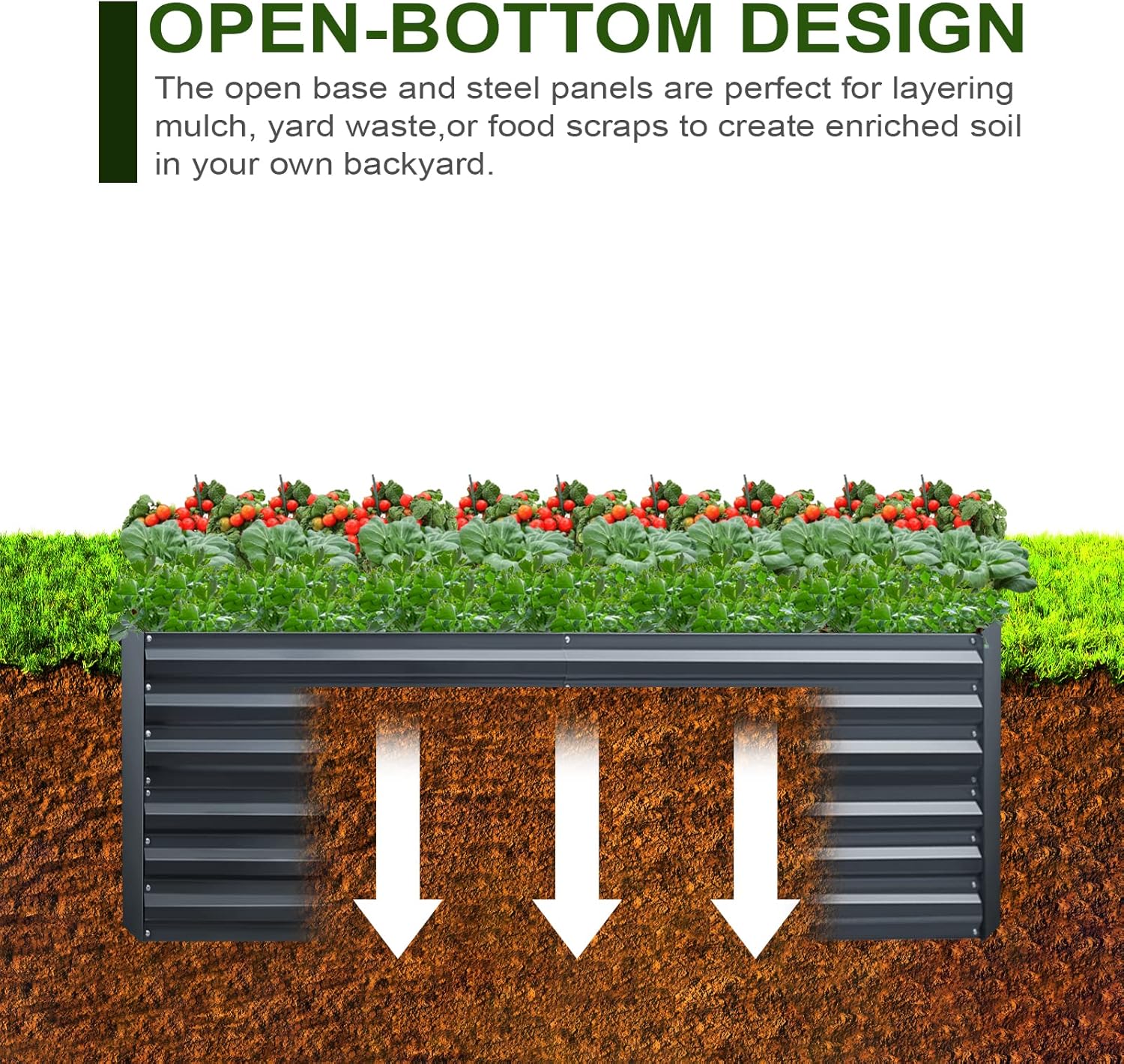 - Versatile and Adaptable: This raised garden bed kit is suitable for growing a wide range of plants, vegetables, and herbs, making it an ideal choice for novice and experienced gardeners alike. The galvanized steel design is suitable for use in any climate or growing condition.