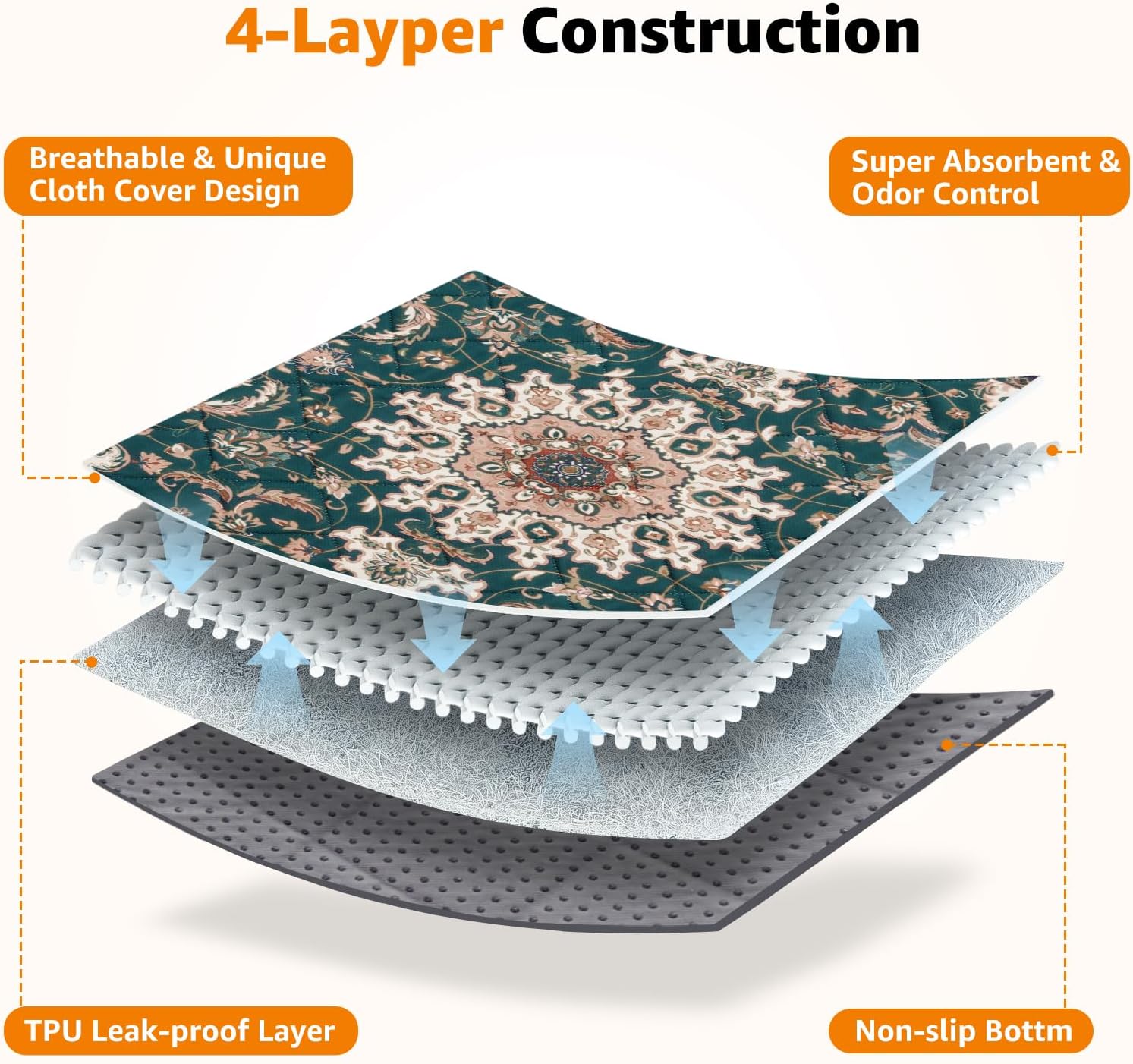 - STYLISH DOG PADS: Our Bohemian style reusable puppy pads not only ensure reliable floor protection, but they also add a touch of style to your home. They seamlessly blend with your interior decor, providing a comfy, safe spot for your furry friend’s activities or relaxation