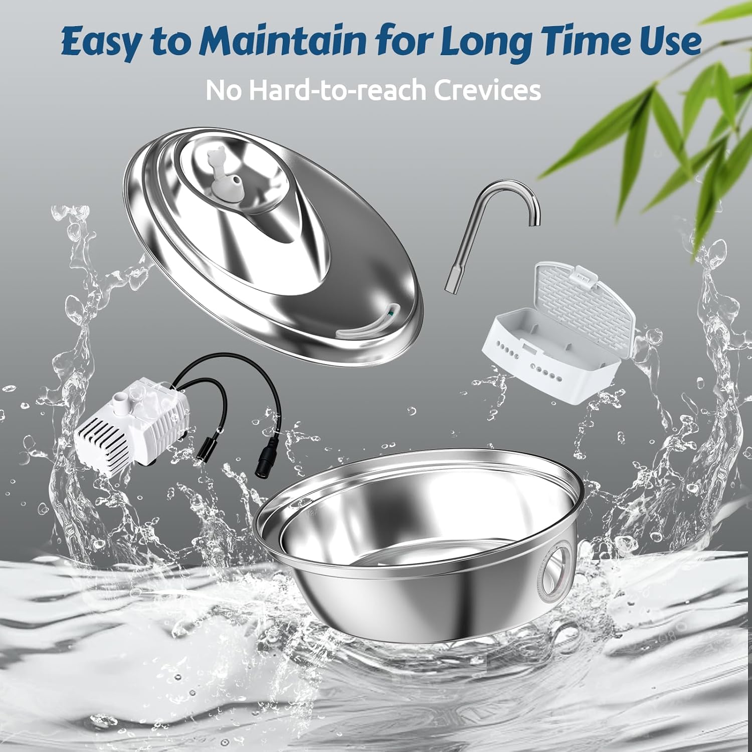 - Easy-to-maintain Design: Integrated disassembly design separates the pump, removable filter cartridge, and cable from the fountain. ORSDA pet fountain has only 4 parts and is dishwasher safe, making cleaning effortless.