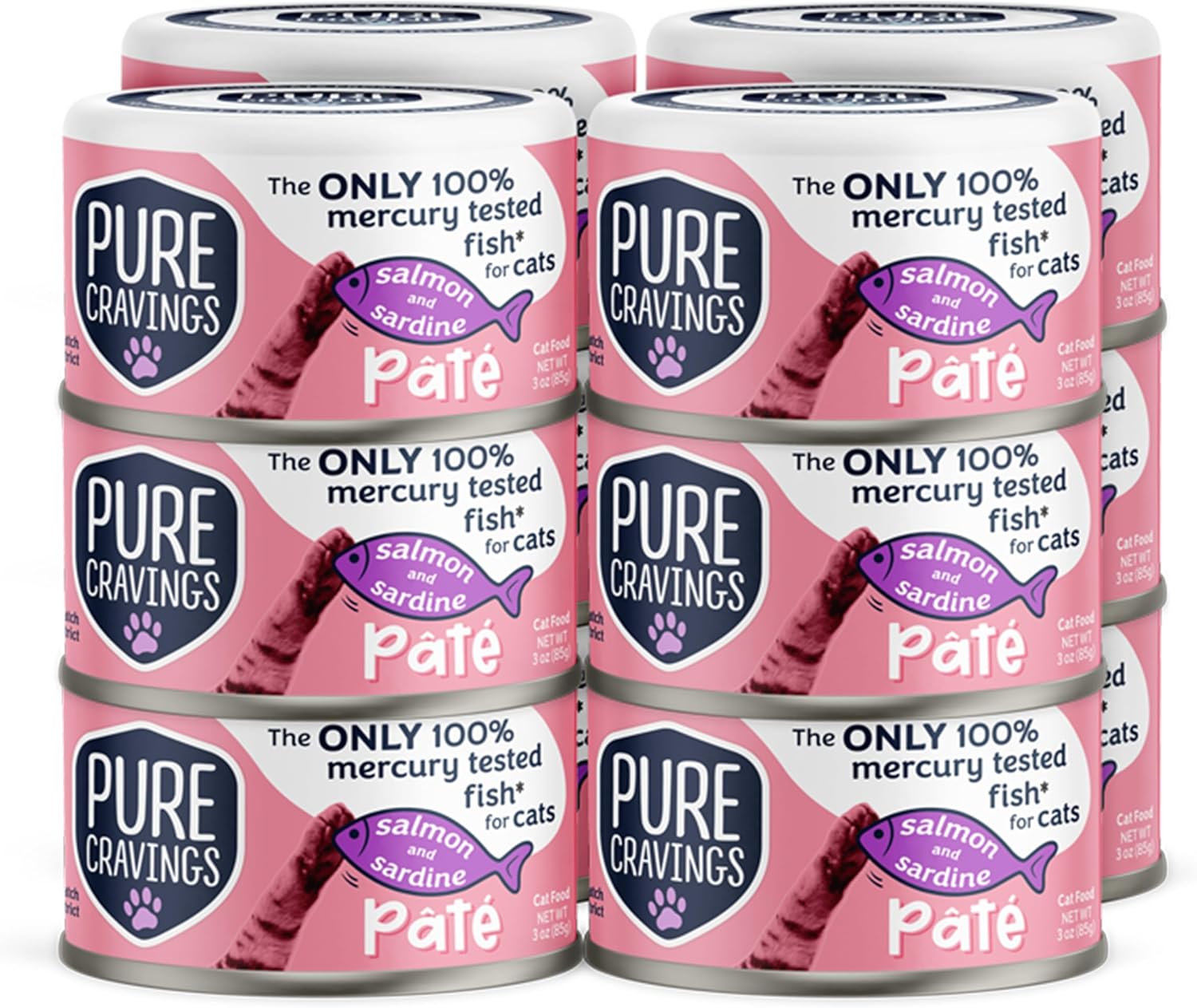 Salmon and Sardine Pate, Canned Wet Cat Food, 100% Mercury-Tested, Moist Can Fish, Grain-Free Protein, Non-GMO, 12 Pack