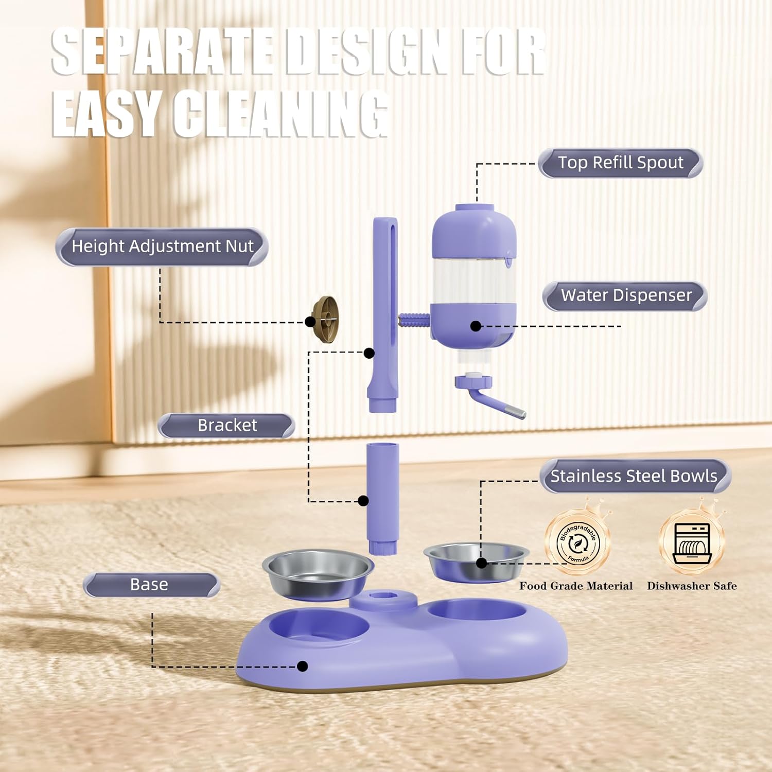 Dog Bowls with Puppy Weaning Bottles,3 in 1 Bowl Set with Water Dispenser and 2 Food Grade Stainless Steel Dog Bowls,15°Tilted Cat Food and Water Bowl Set for Cats,Bunnies,Ferrets