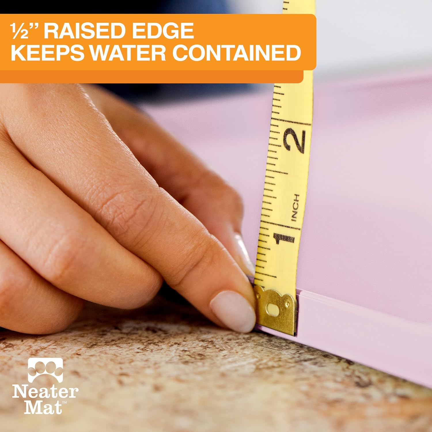 - EXTRA-HIGH RAISED EDGE: Dog water bowl mat measures 24” x 16” with a ½ inch raised edge. Having an anti-spill edge helps contain the water on the pet mat and prevent run-off. Cat or dog feeding mat easily fits two medium to large sized bowls.