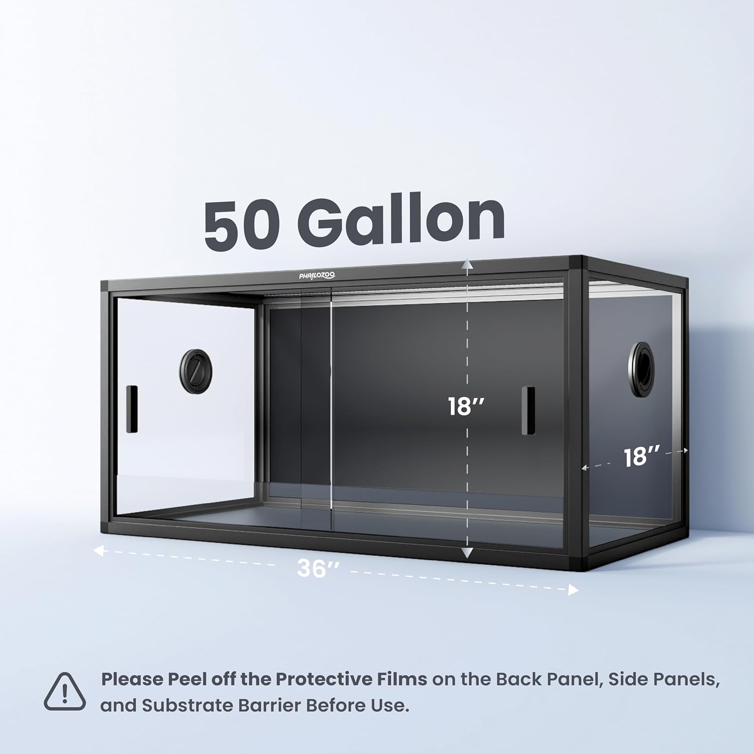 - ăSize MattersăOur stylish and functional 50 gallon reptile tank measures 36''Lx18''Wx18''H. Perfect for bioactive setups, such as gecko tank, juvenile bearded dragon tank, snake enclosure, lizard tank. Spacious playground for your beloved reptiles to explore and thrive while being safe.