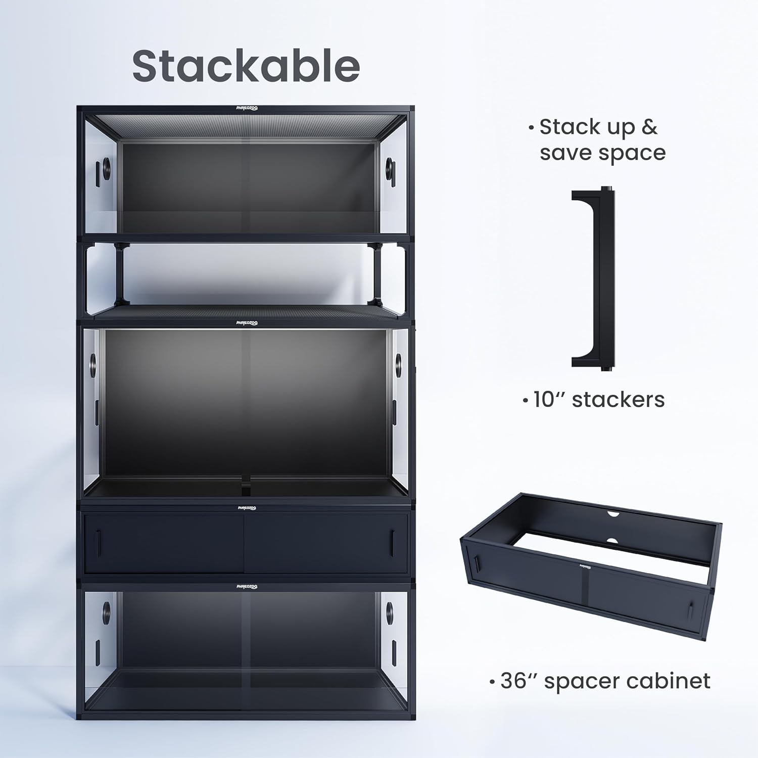 - ăStackableăOur stackers and spacer cabinets allow you to build your reptile sanctuary at home!