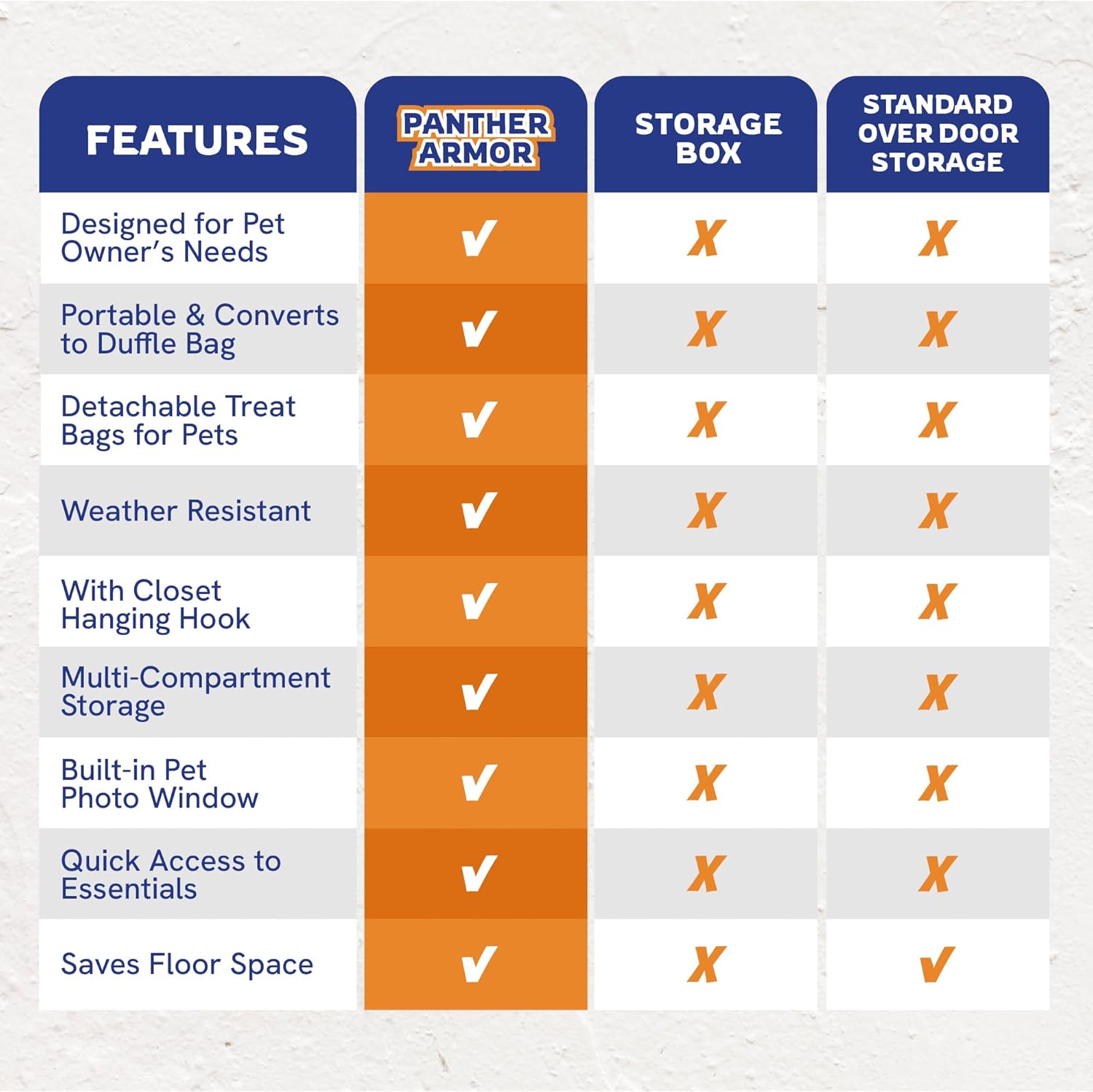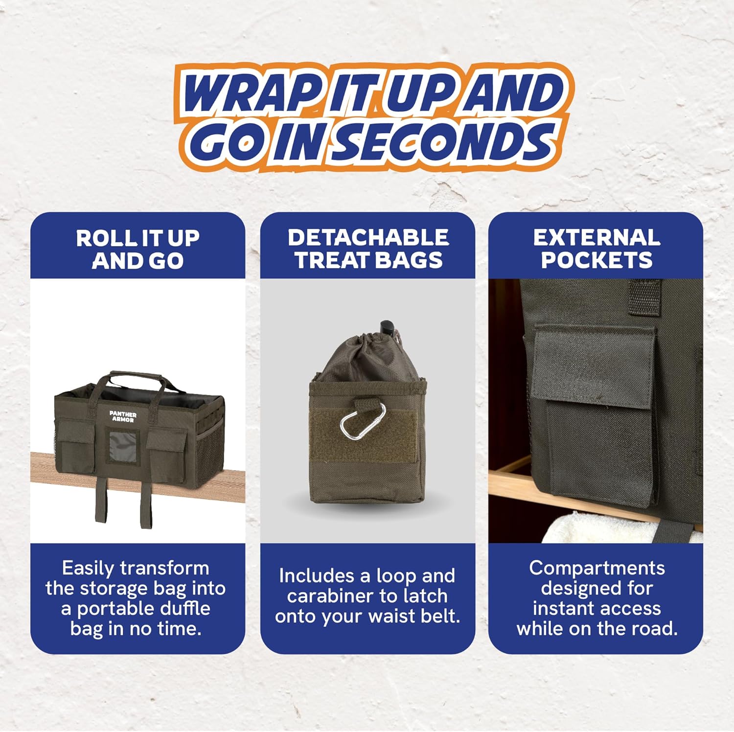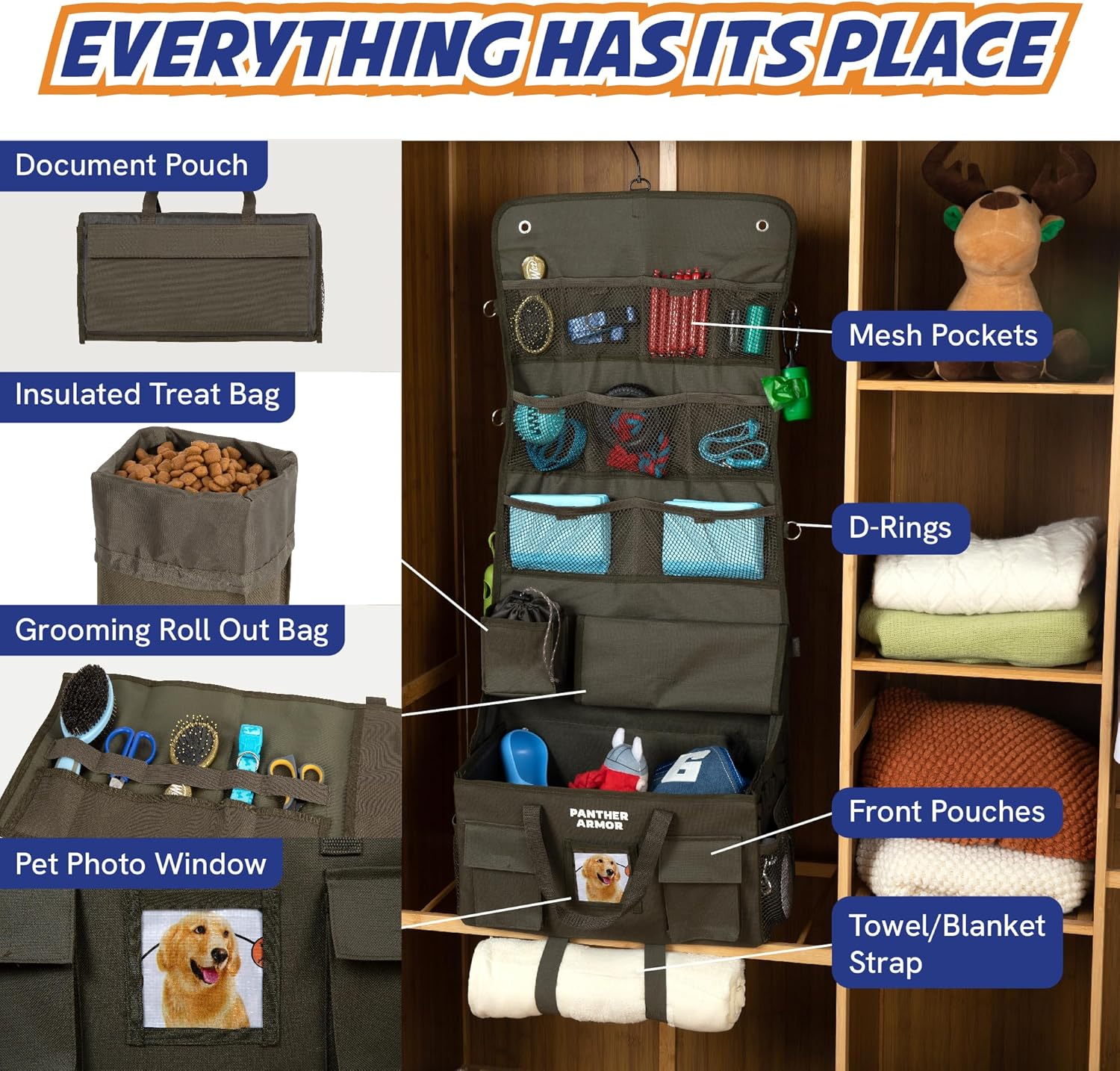 Panther Armor Dog Travel Bag Hanging Dog Organizer & Pet Storage Tote Bag for Supplies | Waterproof Door Storage & Closet Organizer | Food & Treat Container for Travel Accessories