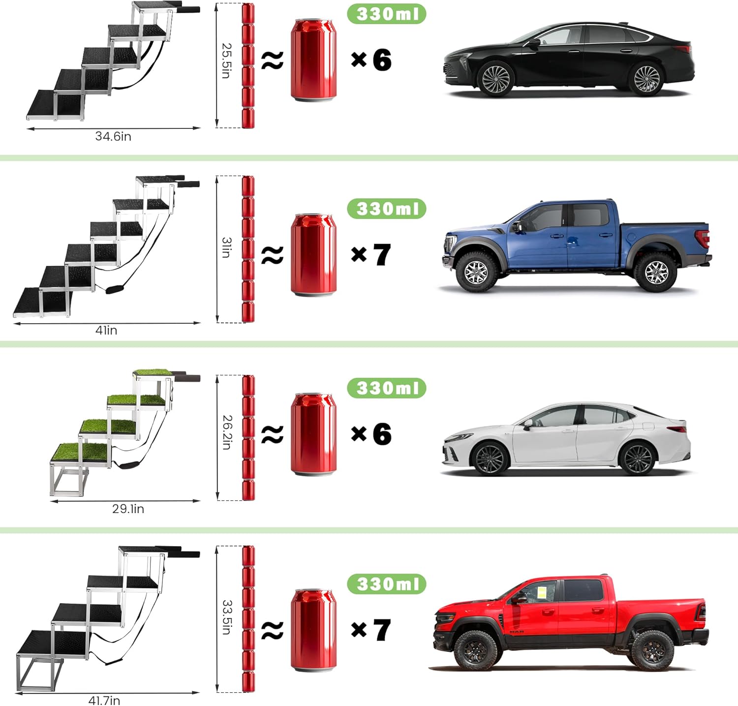 - Lightweight & Portable: At only 4.35kg (5-layer), our PetStep ramp is designed for easy transport. Foldable and compact, it fits conveniently in your car trunk, making it an ideal travel accessory.