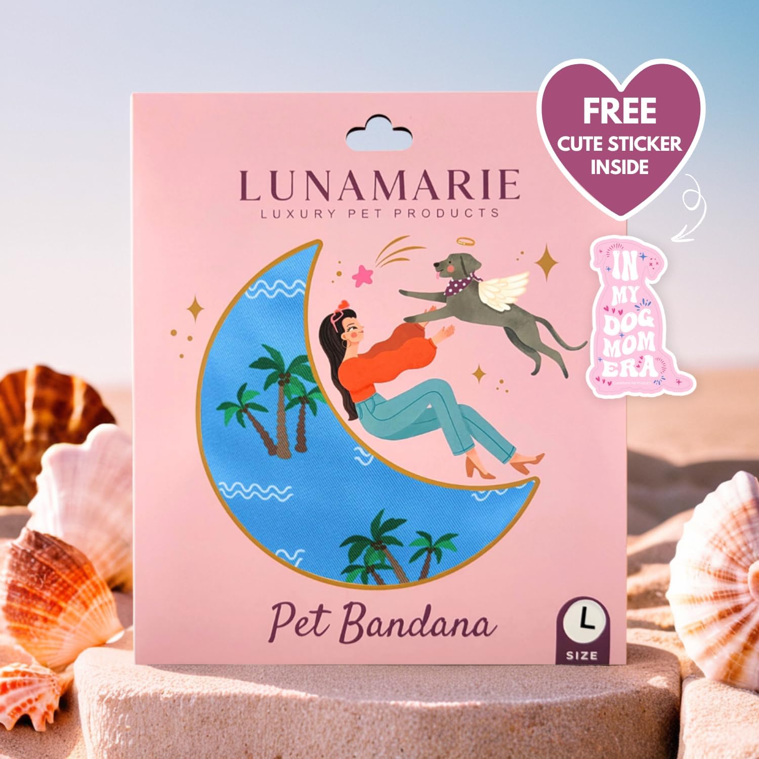 LunaMarie - Luxury Pet Birthday Bandanas -Premium & Silky Poly Fabric | 100% Handmade | Custom Shape Dual Layered (Playa Azul, Medium)
