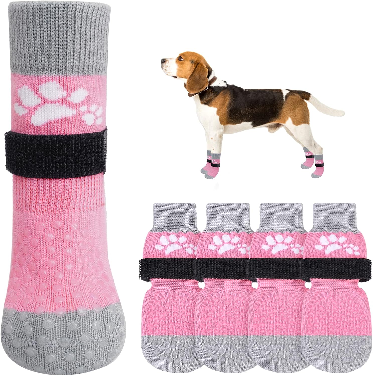 • ANTI-FALLING ELASTIC BAND DESIGN: Extra adjustable, removable waistband allows the socks to fit snugly on playful pet's paws, not easy to fall off. You can use the black elastic loops to adjust the tightness of your dog's socks (Note: Don't fix it too tight, so your dog will feel comfortable) Let your dog won't fall off even during walks or runs.