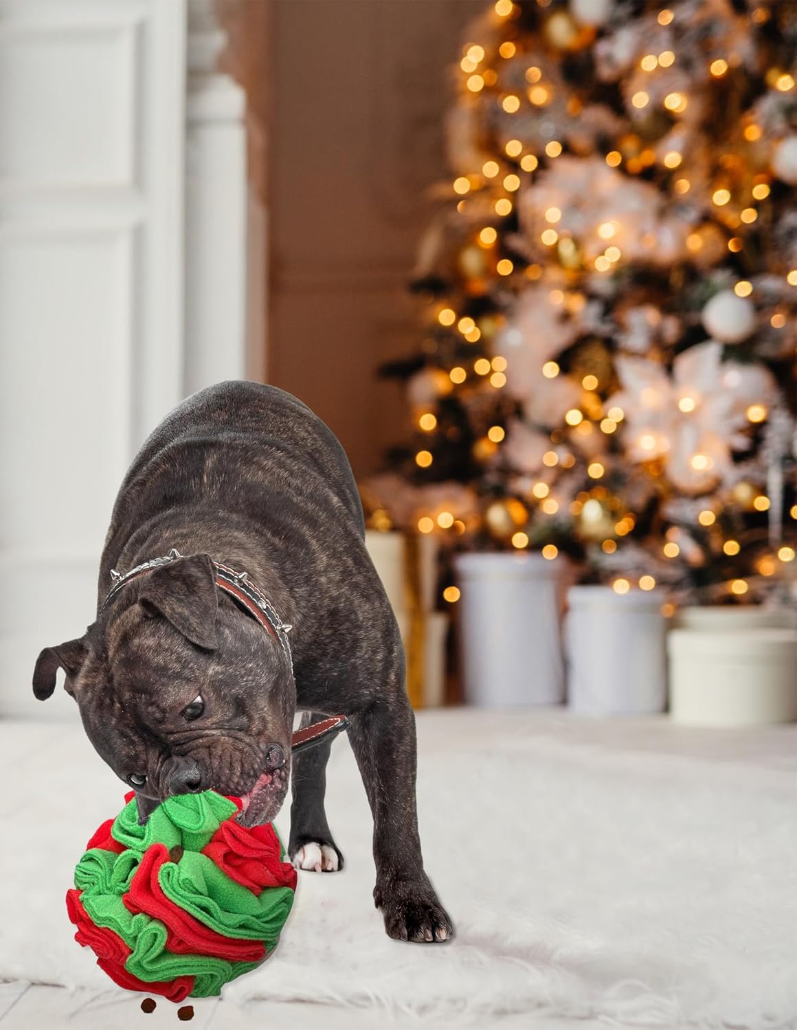 Glory To Dog Puppy and Medium Breed Snuffle Interactive Foraging Dog Puzzle Ball Toy Christmas Green and Red Large