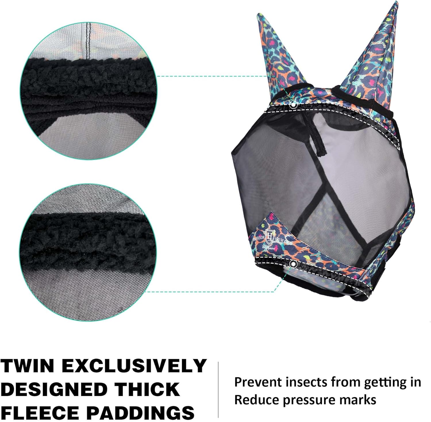 - Lightweight, Multi-Function Fabrics: Ultra-fine, ventilating, and long-lasting nylon mesh offers reliable UV protection for your horse's skin, it effectively prevents sun damage and bleaching. Quality edging along the nose cover enhances durability.