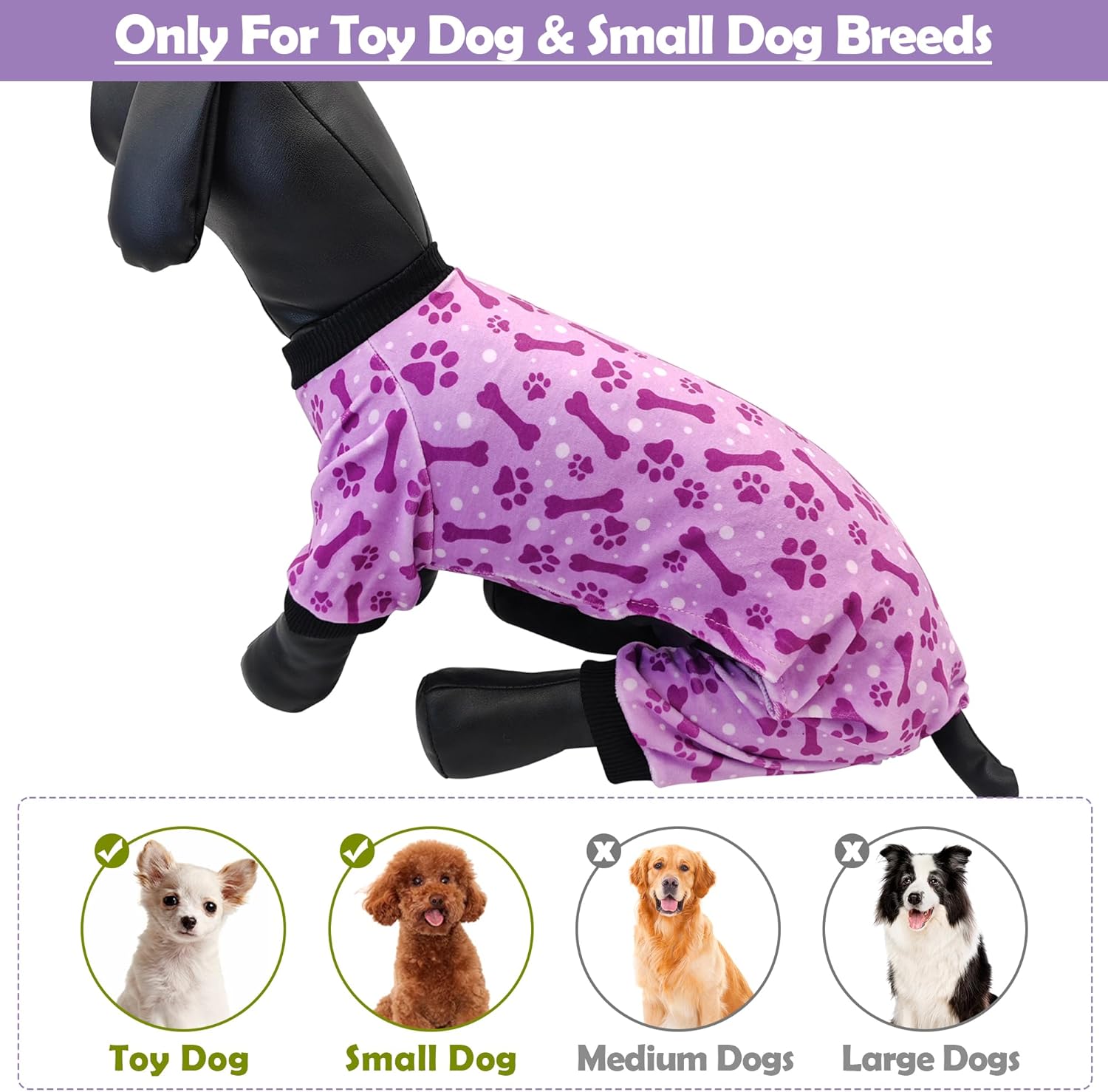 PET SHOW 4 Pack Small Dog Pajamas Paw Bone Patterns Cute Clothes for Medium Dogs Soft Fleece Stretchy PJs 4 Legged Jumpsuit Puppy Cats Onesies Outfits with Sleeve Dachshund Doggies Girl Boy (Large)
