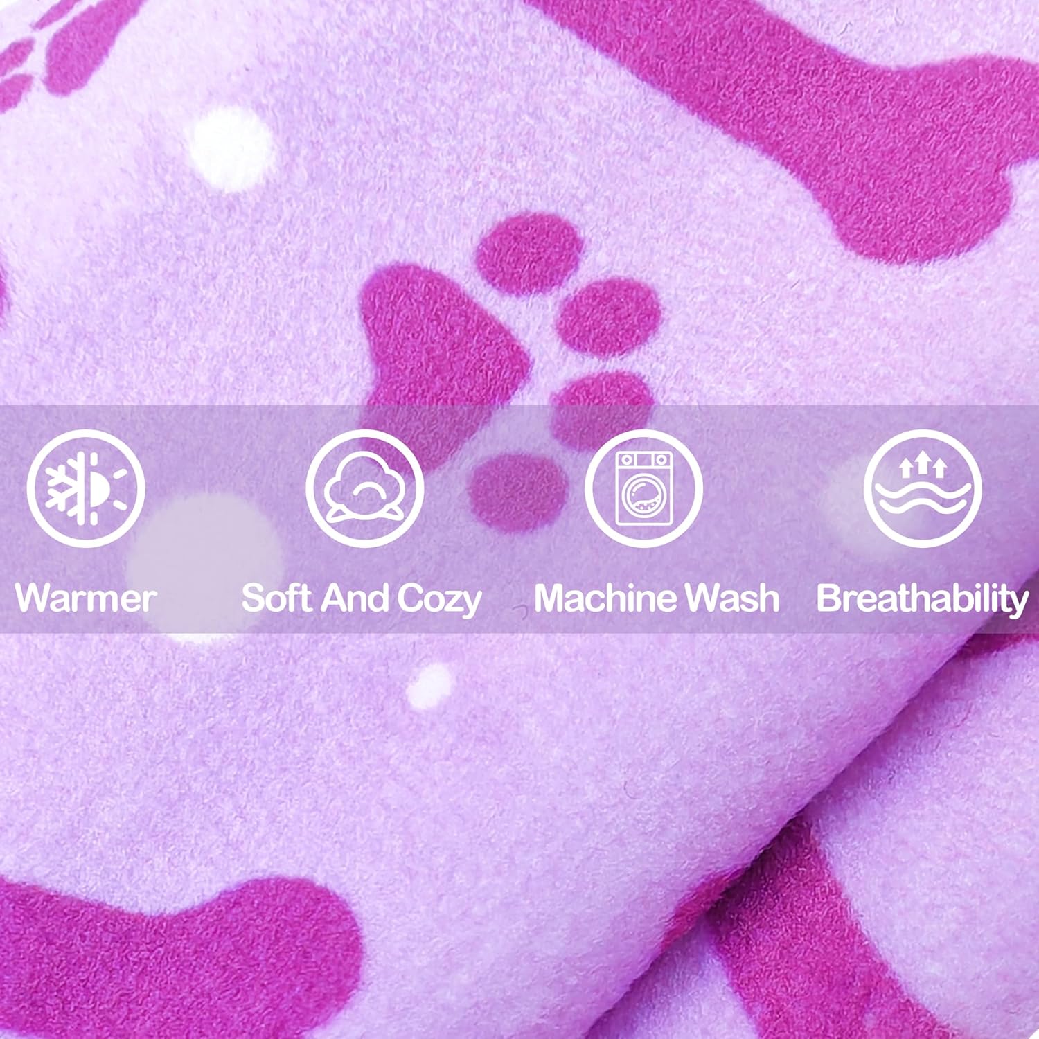 - Paw&Bone Prints Dog PJs: This dog clothes set contains 4 pieces cute dog fleece pajamas with dog paw and bone designs. There are 4 colors to choose: pink purple/blue/red/black, suitable for small medium doggies,male and female. It is adorable and eye-catching when your puppies wear it. They are good choice for the multi pet families.