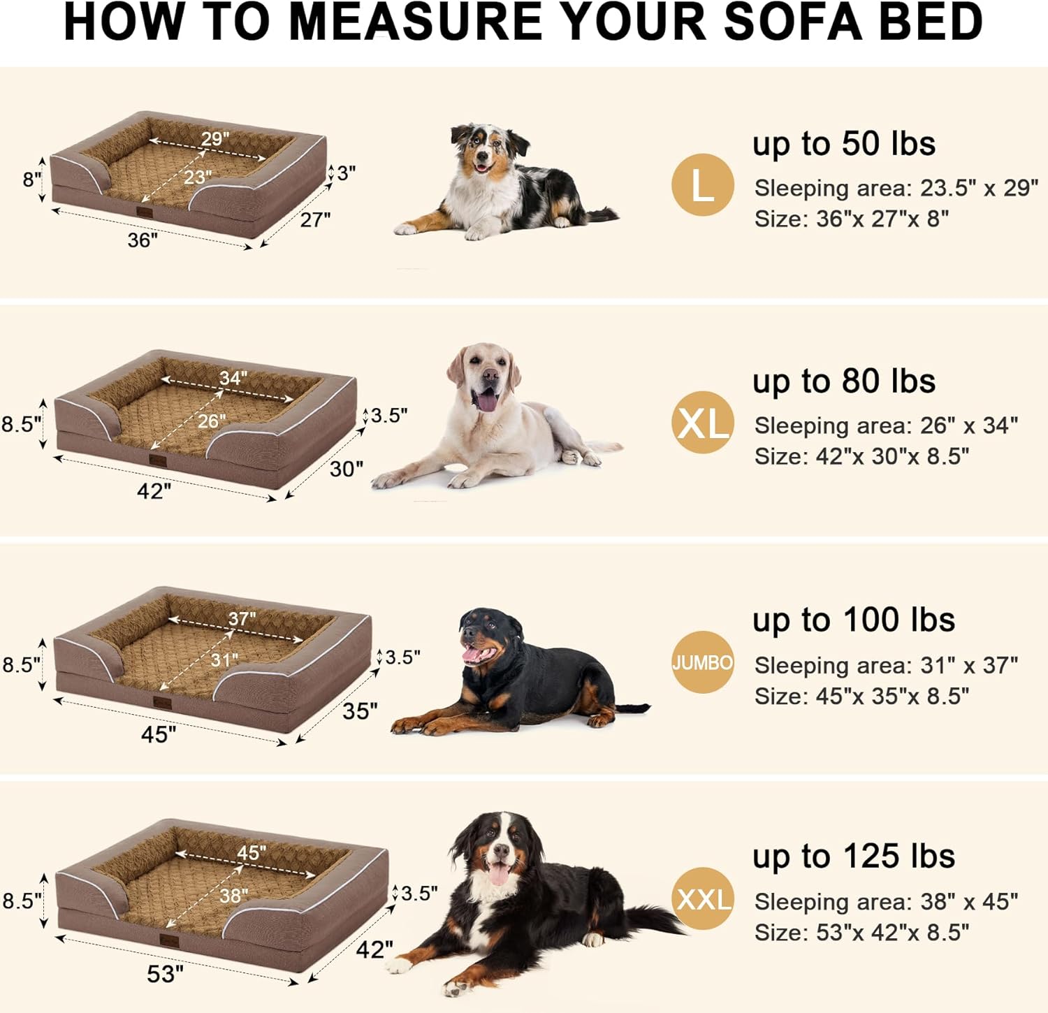 Orthopedic Waterproof Dog Bed for Extra Large Dogs, Memory Foam XL Dog Bed with Sides, Egg-Crate Foam and Non-Slip Bottom Jumbo Dogs Couch Beds with Washable Removable Cover(Jumbo,Brown)
