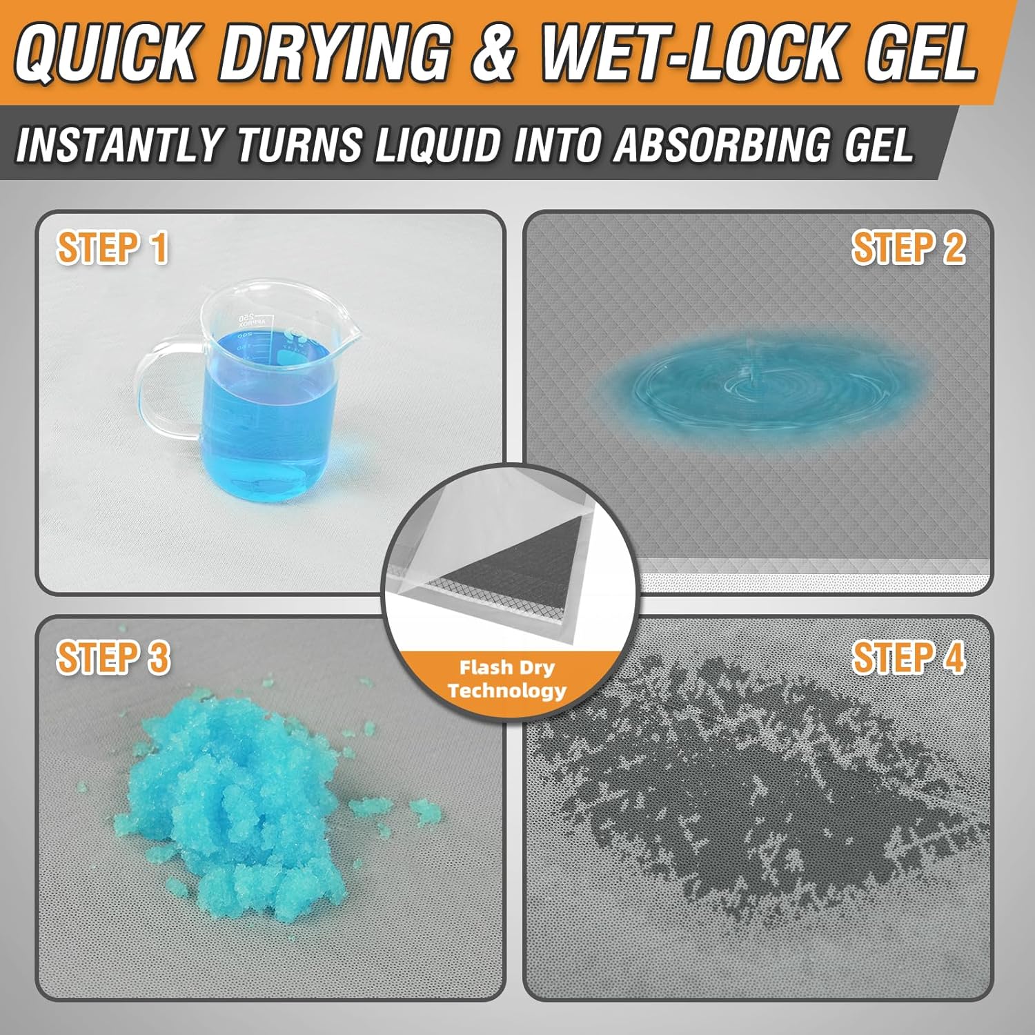 - Innovative 6-Layer Protection Design: The top layer of the pad uses a perforated film that is soft and comfortable, and can absorb urine quickly. The 2nd layer is activated carbon, it can eliminate odors effectively. The 3rd layer features diamond quilting ensuring urine flows in the right direction. The 4th layer is the polymer cotton core that can turn urine into gel instantly. The last two layers are important in keeping liquid leak-proof, especially the last layer of plastic backing.