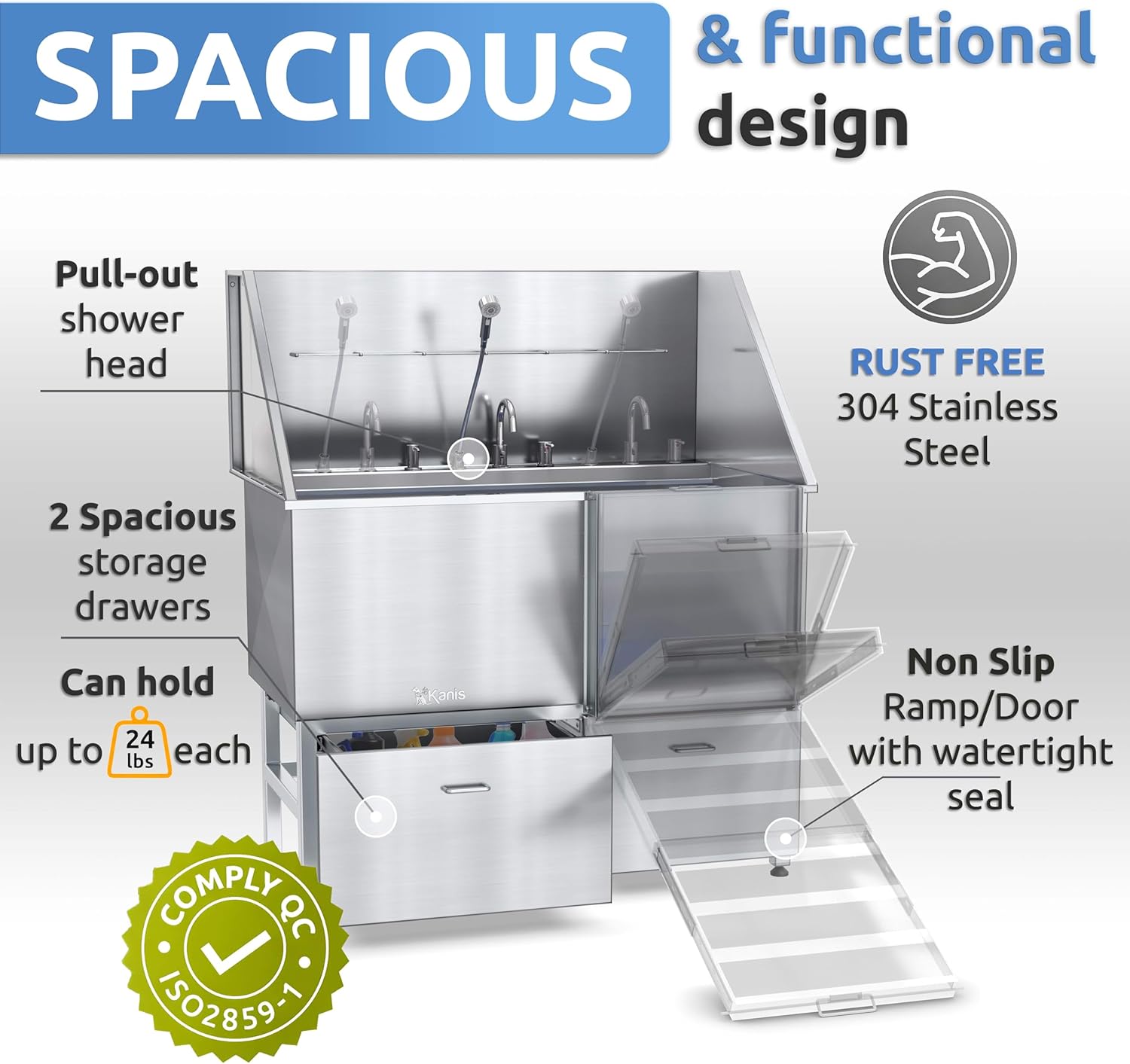 - MORE THAN FUNCTION - BUILT WITH PURPOSE: Every KANIS dog tub is purpose-built for comfort, safety, and a stress-free experience. With ergonomic design, Paw-Safe surfaces, and a Fear Free approach, we focus on well-being, not just functionality