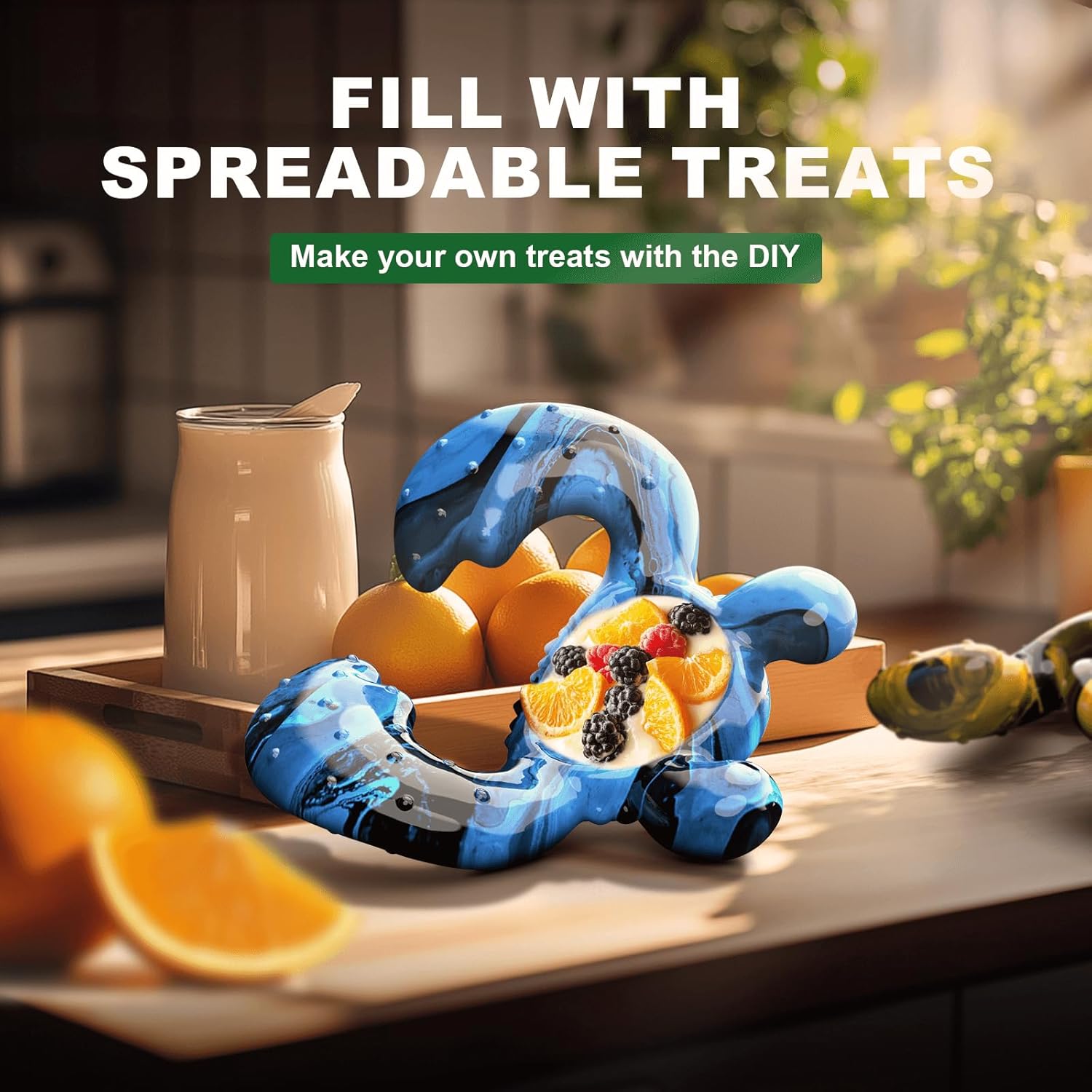 - Great for Indoor Play or Treat Dispensing - Add peanut butter or frozen yogurt in grooves to boost solo play. Perfect for indoor use.