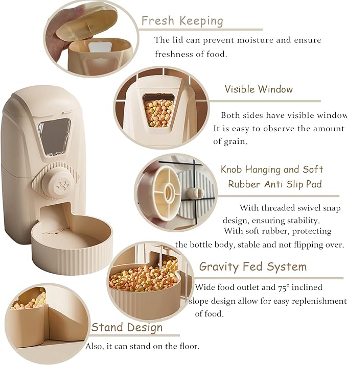 - 【Automatic Refill Design】:Our automatic feeder features an automatic gravity grain supply, safe and labor-saving without the need for electricity. And the 5cm food outlet and 75° inclined slope design allow for easy replenishment of food, while the siphon device in the water dispenser controls water flow speed and prevents leaks.