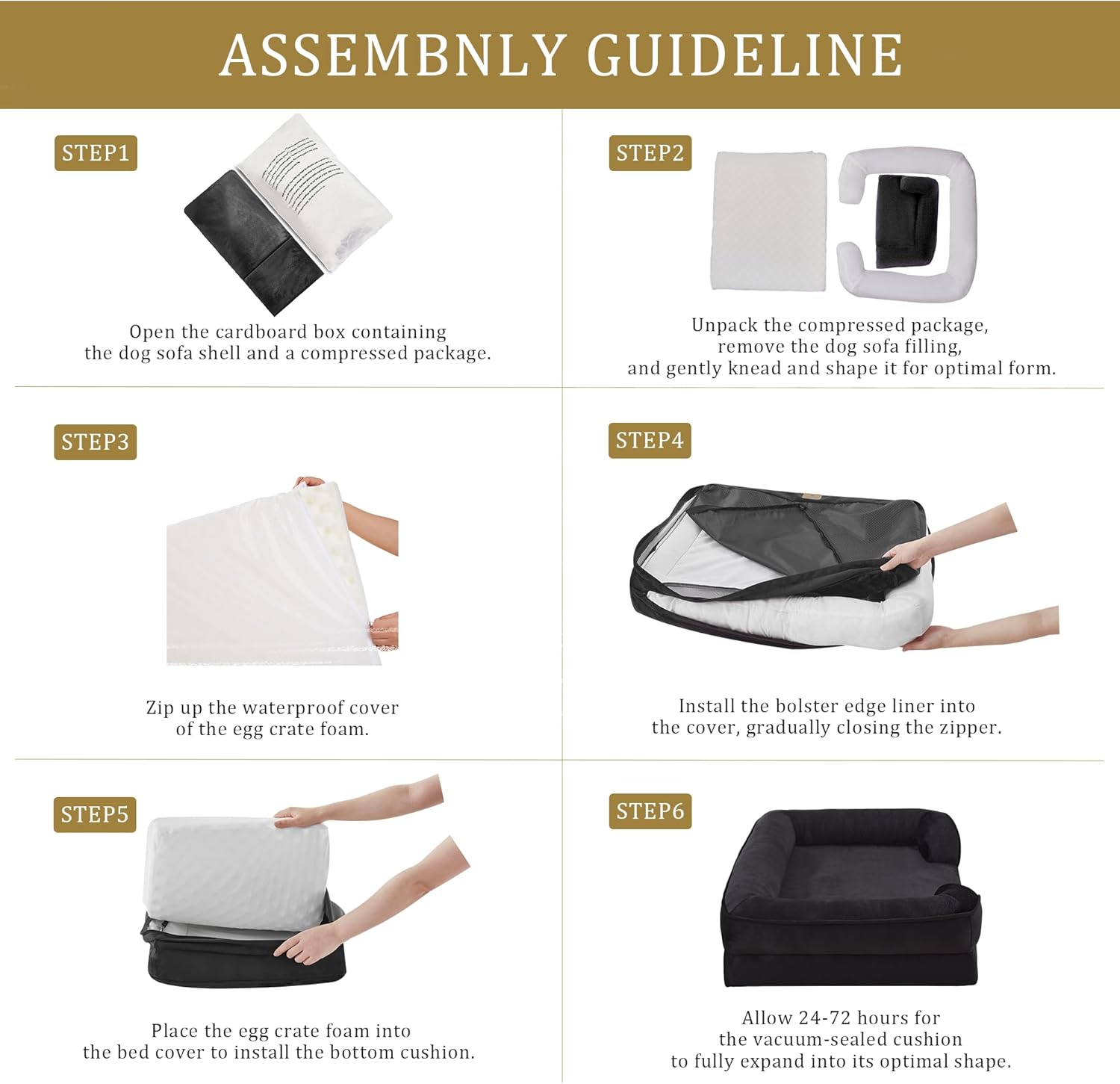 Bedfolks Orthopedic Dog Bed, Waterproof Dog Sofa Bed for Large Dogs, Egg Foam Pet Couch Bed with Removable Washable Cover and Nonslip Bottom, Black