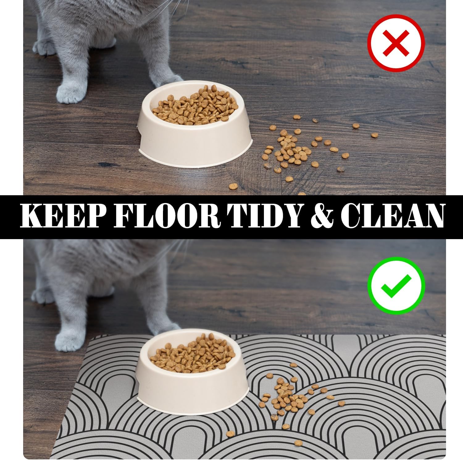 • Versatile Usage: The leak-proof dog feeding mat protect your floor from being corroding by spilled water, it also could be cat litter mat, dog water dispenser mat, pet sleeping mat.