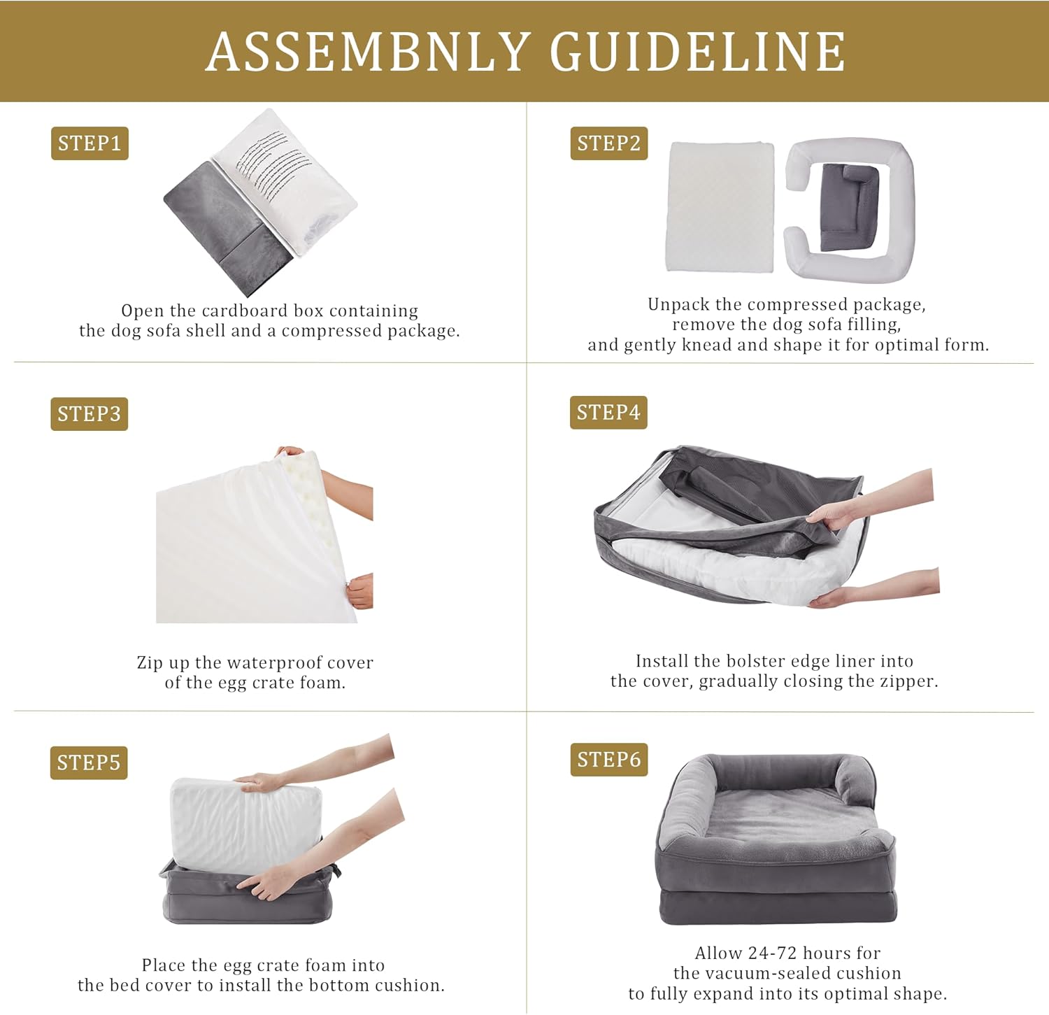 - Suitable Size: Suitable for All Breeds: 38"W x 28"L x 6.5"D; Sleeping surface: 30.5"W x 24"L (Up to 70lbs); When selecting the product size, please pay attention to the sleeping area. Please wait for 48 hours for full expansion to ensure optimal height and comfort before using.