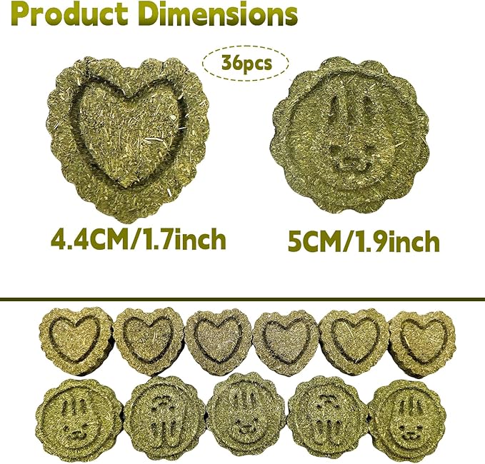 - Natural Timothy Grass Cake-Made from 100% natural Timothy grass, high in fiber, heart shaped and round