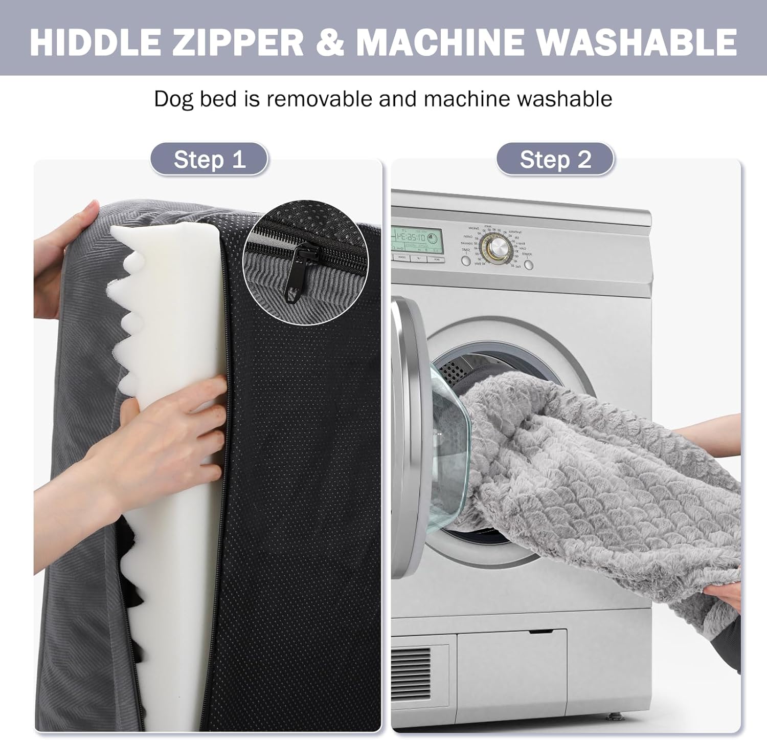 - 🐶WATERPROOF & WASHABLE DOG BED: The dog bed features a removable, machine-washable cover with a zipper for easy to quick remove and care, so just throw it in the washing machine and will be as good as new, ensuring your pet's space stays fresh and hygienic. The waterproof inner lining fully protect the foam from spills, water damage, or accidents, prolonging the product's life.