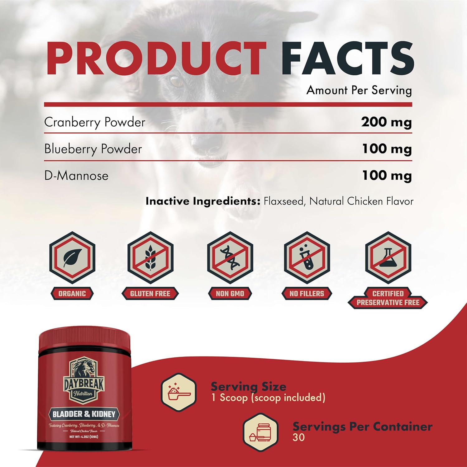 Bladder and Kidney Relief for Dogs & Cats by Daybreak Nutrition | Powder Cranberry Supplement for Dogs and Cat for UTI Treatment & Urinary Support | Dog & Cat Urinary Tract Infection Remedy Supplement