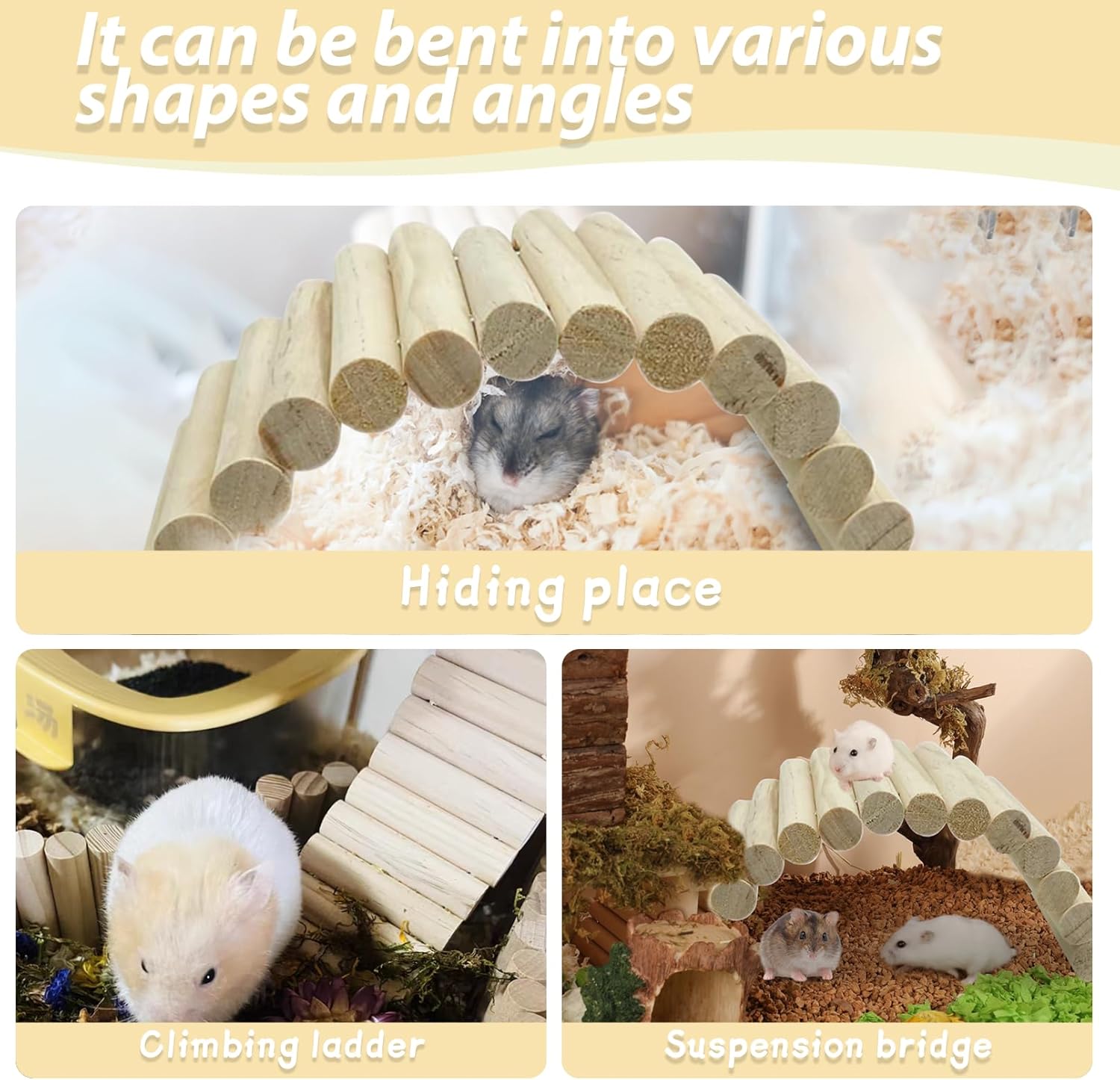 PIVBY 2PCS Wooden Hamster Ladder Bridge, Flexible Wood Tunnel Hide, Hamster Chew Toys for Small Animals Guinea Pig, Rat, Chinchilla, Gerbil, Mice, Mouse (Natural)