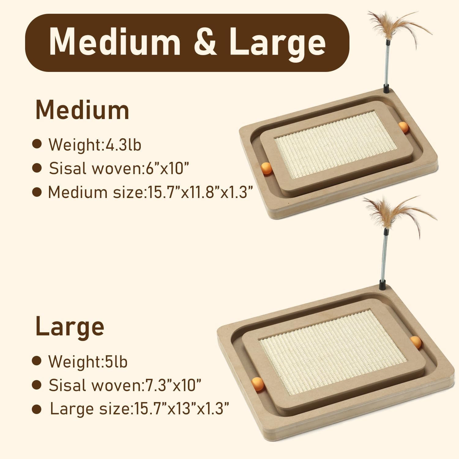 PEEKAB Cat Scratcher,Sisal Scratching Board with Track Ball Interactive Toy and Swing Feather Toys for Indoor Cats and Kittens,Large Heavy Durable