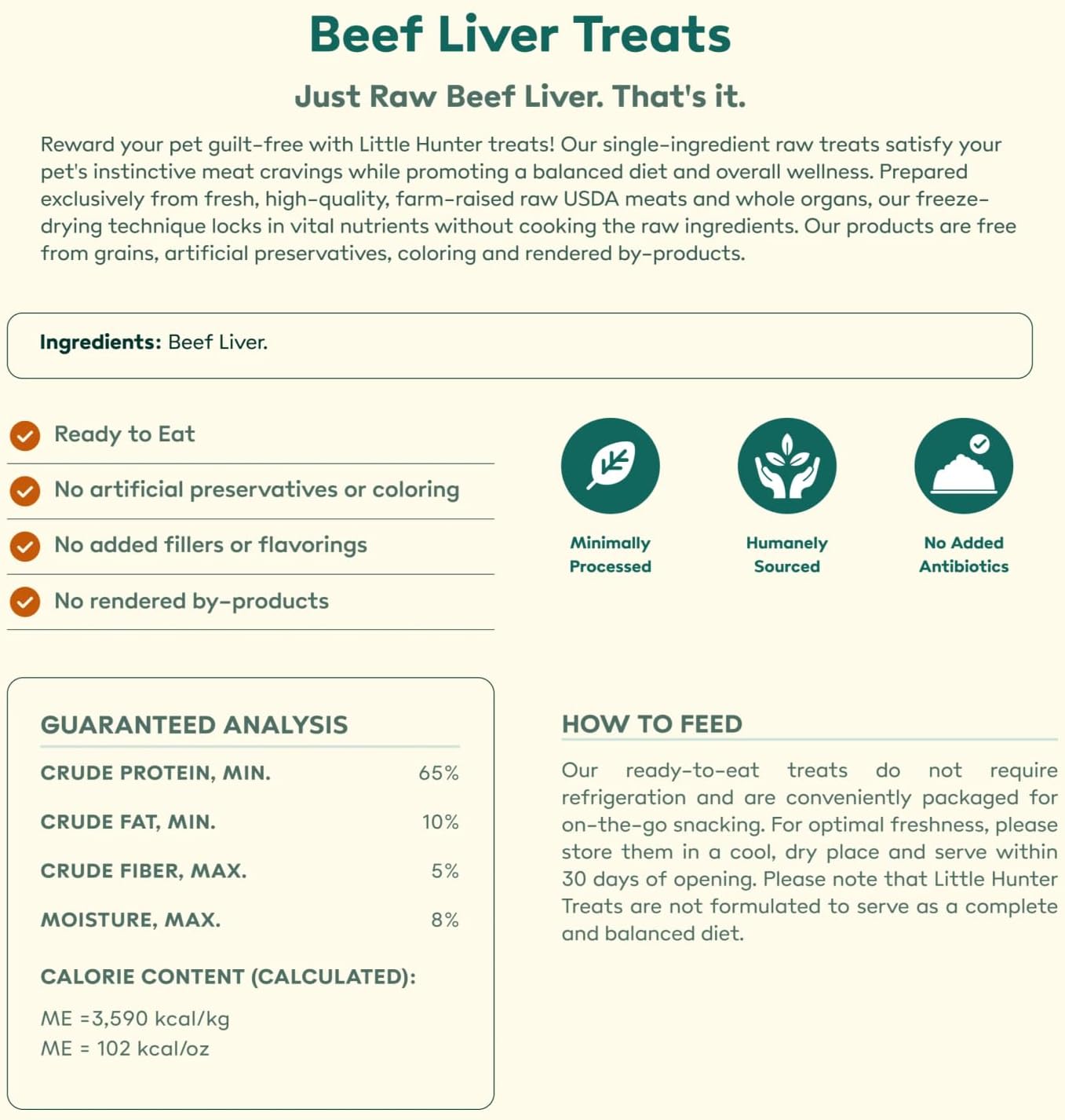 Little Hunter Freeze Dried Dog Treats - Beef Liver - Raw Single Ingredient Beef Liver Dog Treats for Snacks, Training, Dog Food Toppers - All Natural, Healthy Dog & Puppy Treats, 2 oz