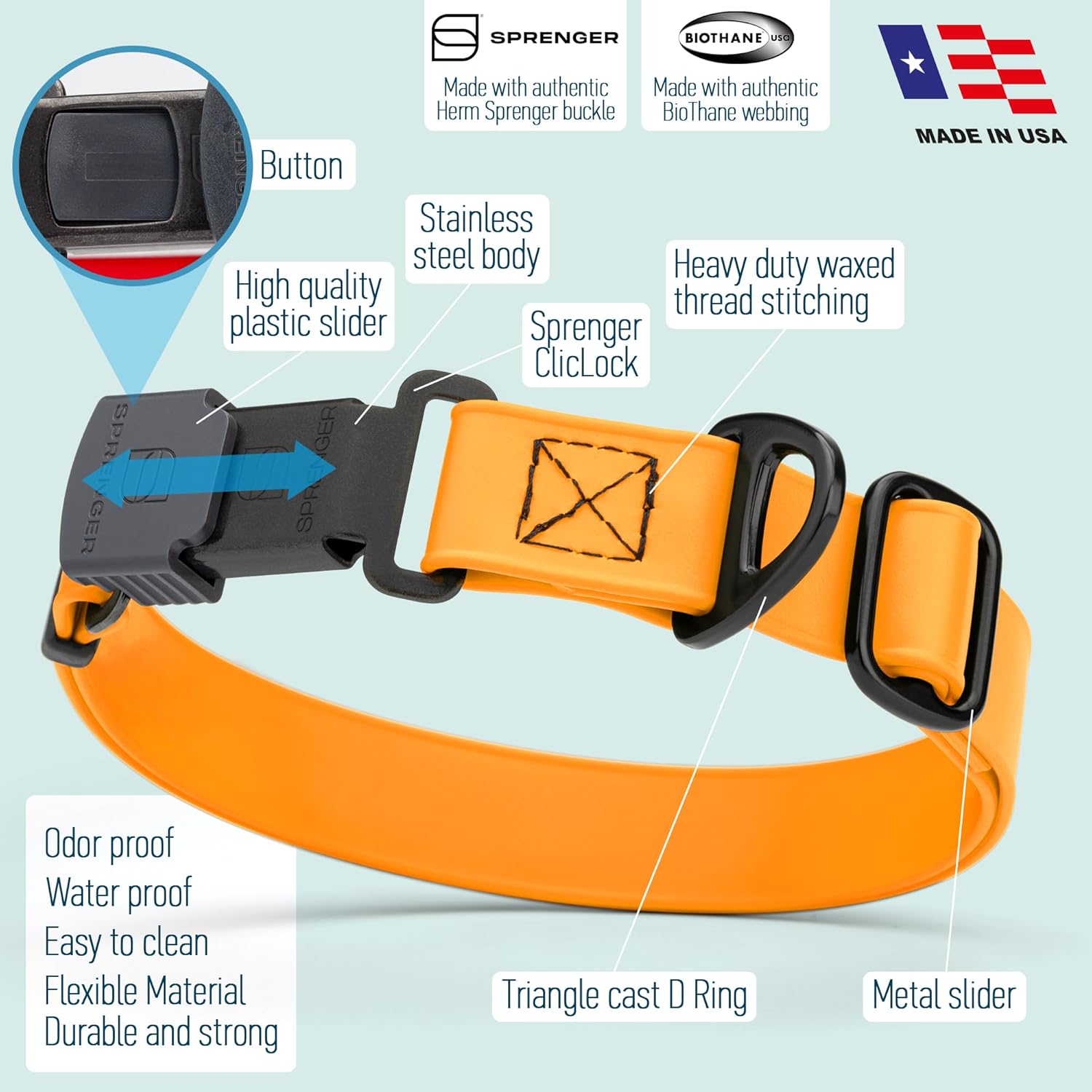 - Authentic Herm Sprenger Stainless Steel Cliclock Buckle: This patented Herm Sprenger ClicLock buckle is made of high-quality stainless steel. When closed, the ClicLock makes a clearly audible "click" indicating secure closure. High quality stainless steel materials are rust-proof and German manufacturing ensure it will last for years.