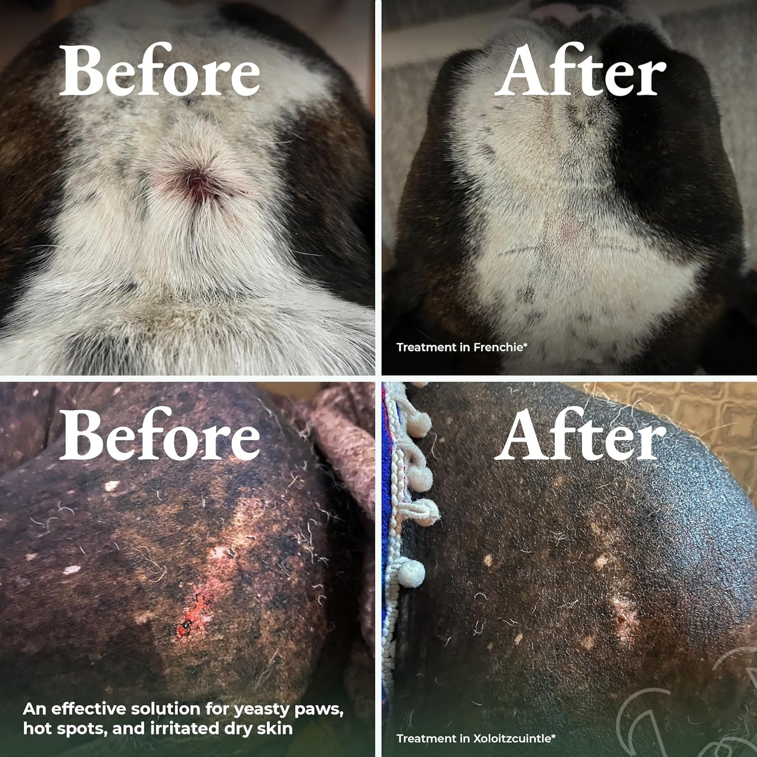 - Soothes Itchy Skin & Irritated Red Paws. Specially designed to address itchy skin, dry patches, and sensitive paws, this powder helps with hot spot treatment for dogs and provides dog yeast infection treatment. Ideal for dog paw yeast treatment, it naturally relieves licking, redness, and irritation caused by allergies and yeast buildup.
