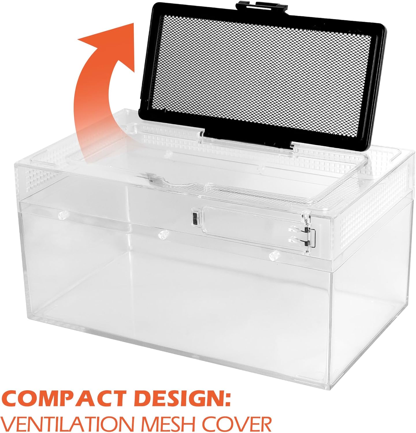 - Design Details: Unlike standard acrylic terrariums, our PC terrarium features a one-piece, unbreakable design. It’s waterproof, suitable for both desert and rainforest habitats, and includes a feeding cover on top for easy access and escape prevention