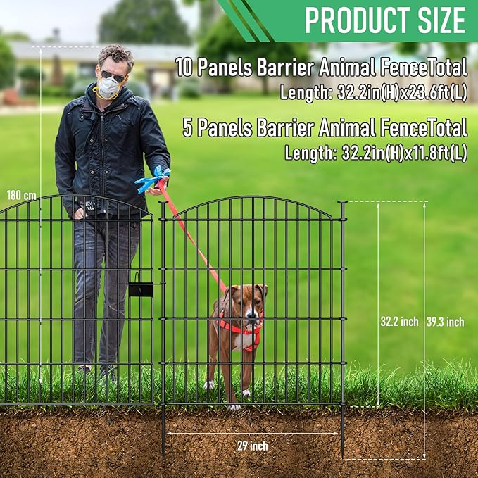 10 Panels Garden Fence Dog Fence Outdoor for Yard, 32in H x 23.6ft L Rustproof Metal Fencing with Ground Stakes | No Dig Animal Proof Containment for Pets/Rabbits | Durable Patio Security Panels