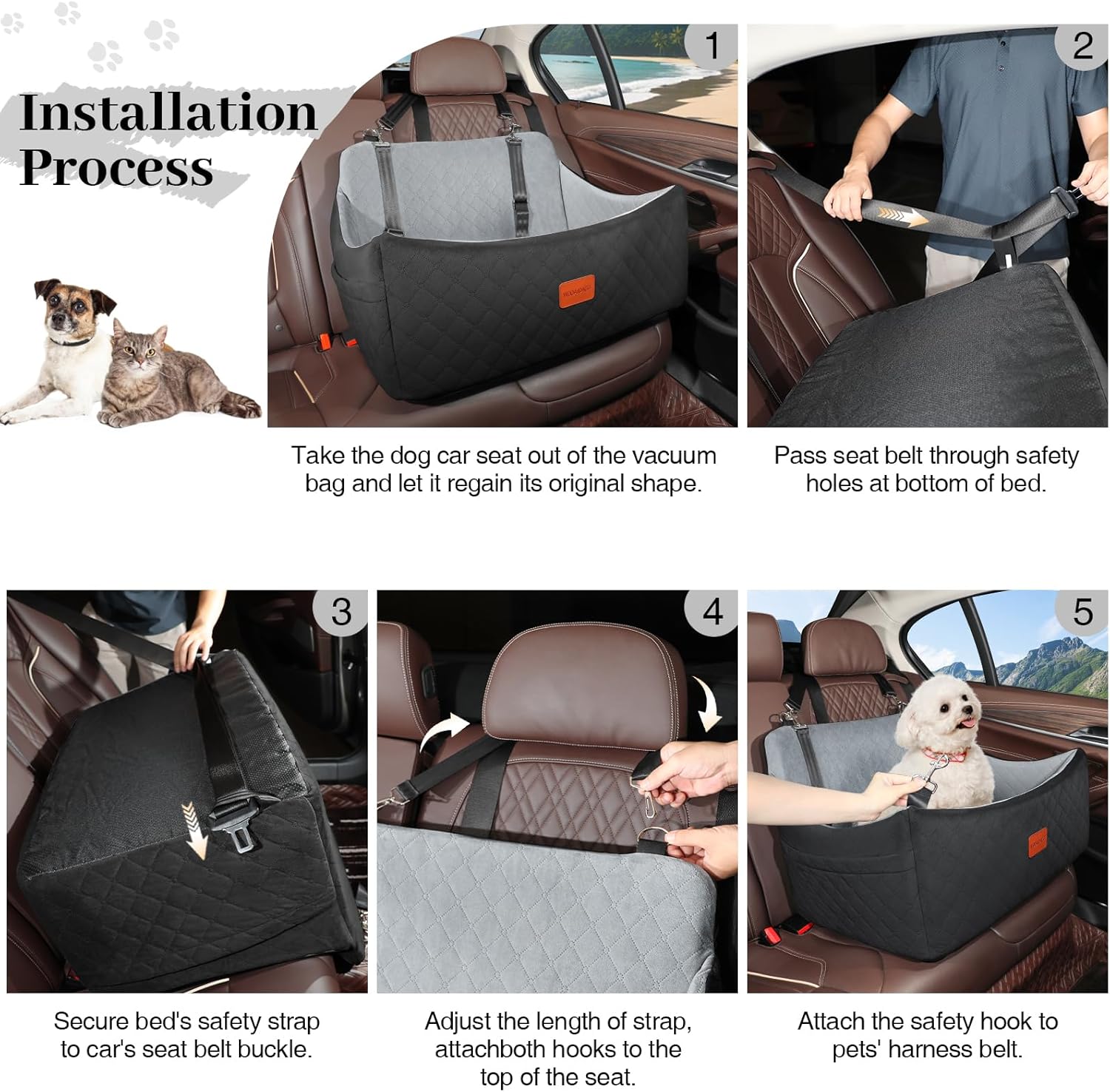 - Enhanced Safety โ Designed with 3 adjustable safety straps, dual safety belt loops, and a non-slip bottom, this dog car seat keeps your pet securely in place while preventing distractions, ensuring a safe ride for both pets and drivers