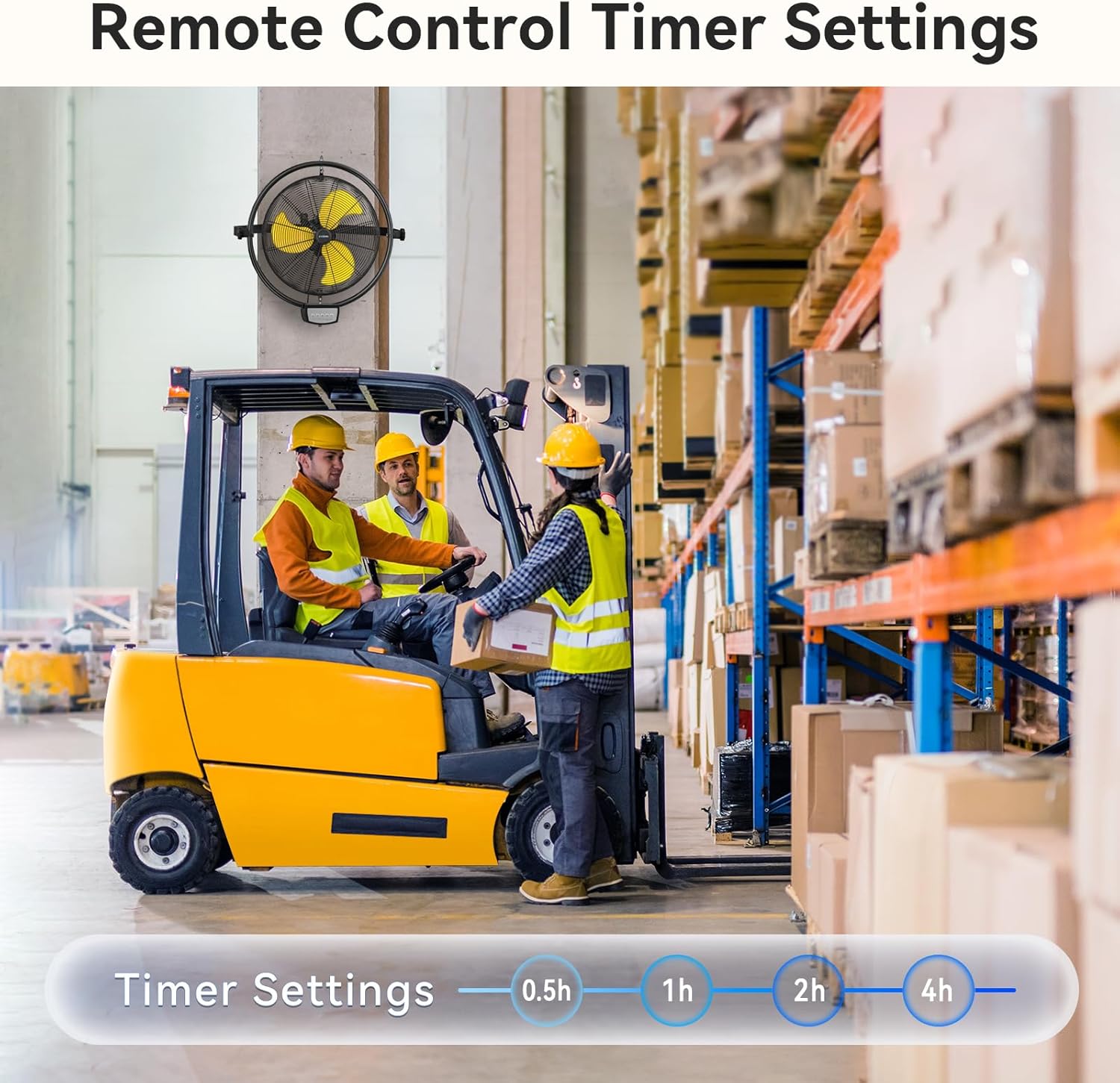 - Dual-Mode Control Industrial Wall Fan: Manual operation or remote control. Operate the wall mounted fan via touch the panel or remote control that reaches up to 26.24 ft distance for easily use even at higher installations. It's easy to choose the more comfortable way you wanted