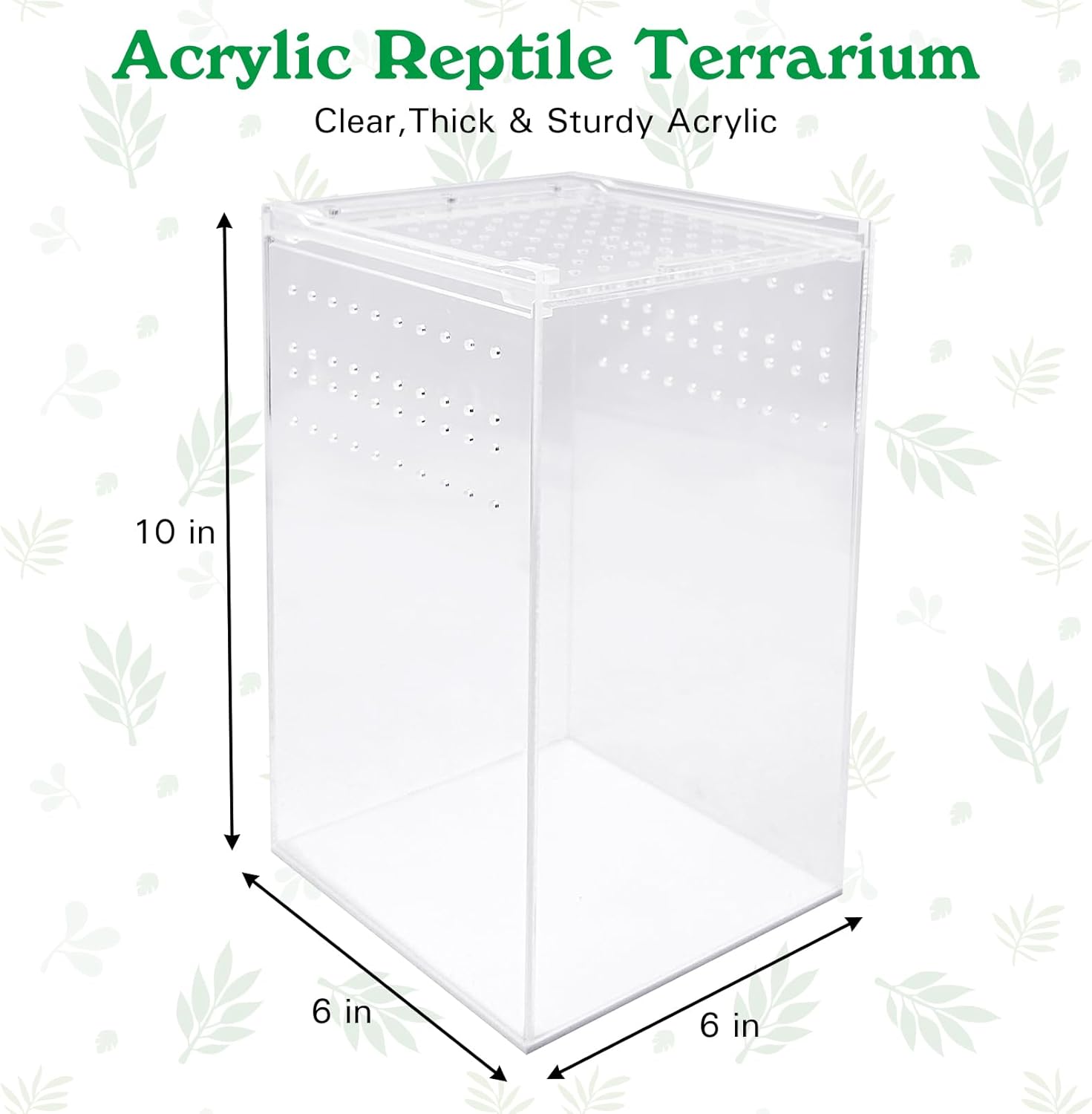 Reptile Terrarium Enclosure 6"x6"x10" Tall Acrylic Tarantula Breeding Box Magnetic Hermit Crab Habitat Vertical Tank Transparent Jumping Spider Cage for Insect Mantis Scorpion Sling Isopods