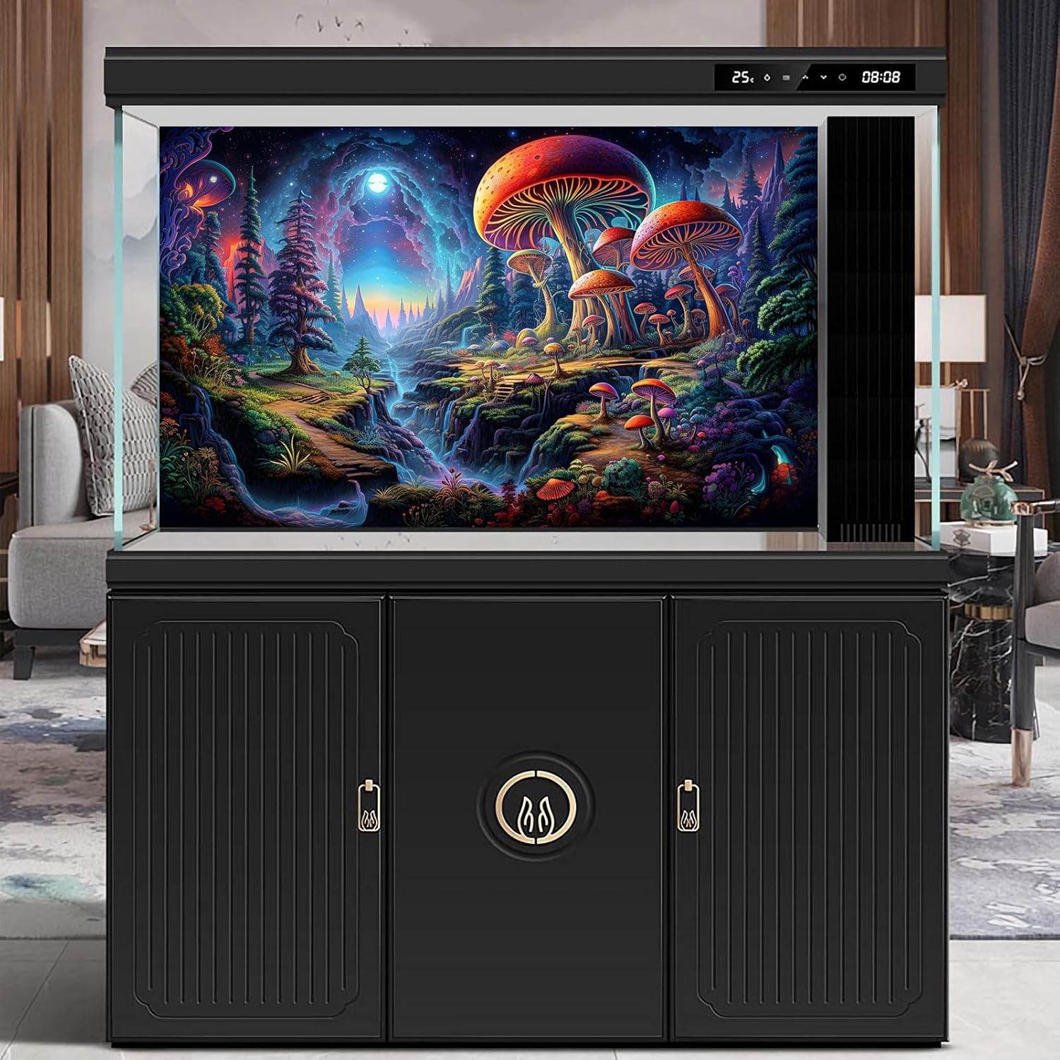 Forest Aquarium Background Fantastic Cartoon Forest Landscape with Mushrooms and Flowers Terrarium Background Fantasy Pine Tree Mysterious Mushroom Theme Fish Tank Backdrop Poster Decor 60x24in
