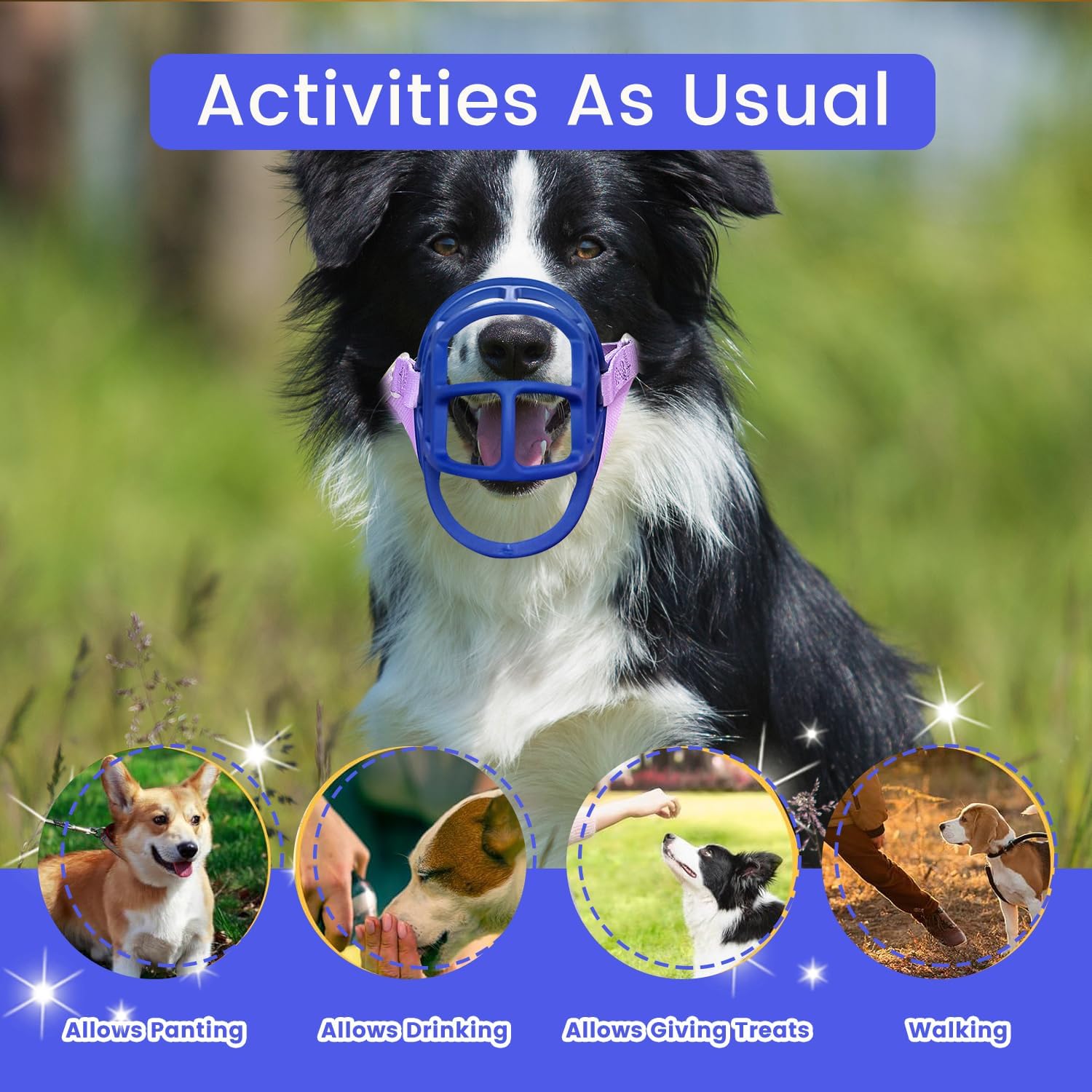 Basket Muzzle Allows Panting Drinking, Anti Biting Chewing, Suitable for Grooming Trimming Training, for Small Medium Large Dogs (Blue, Size 4)