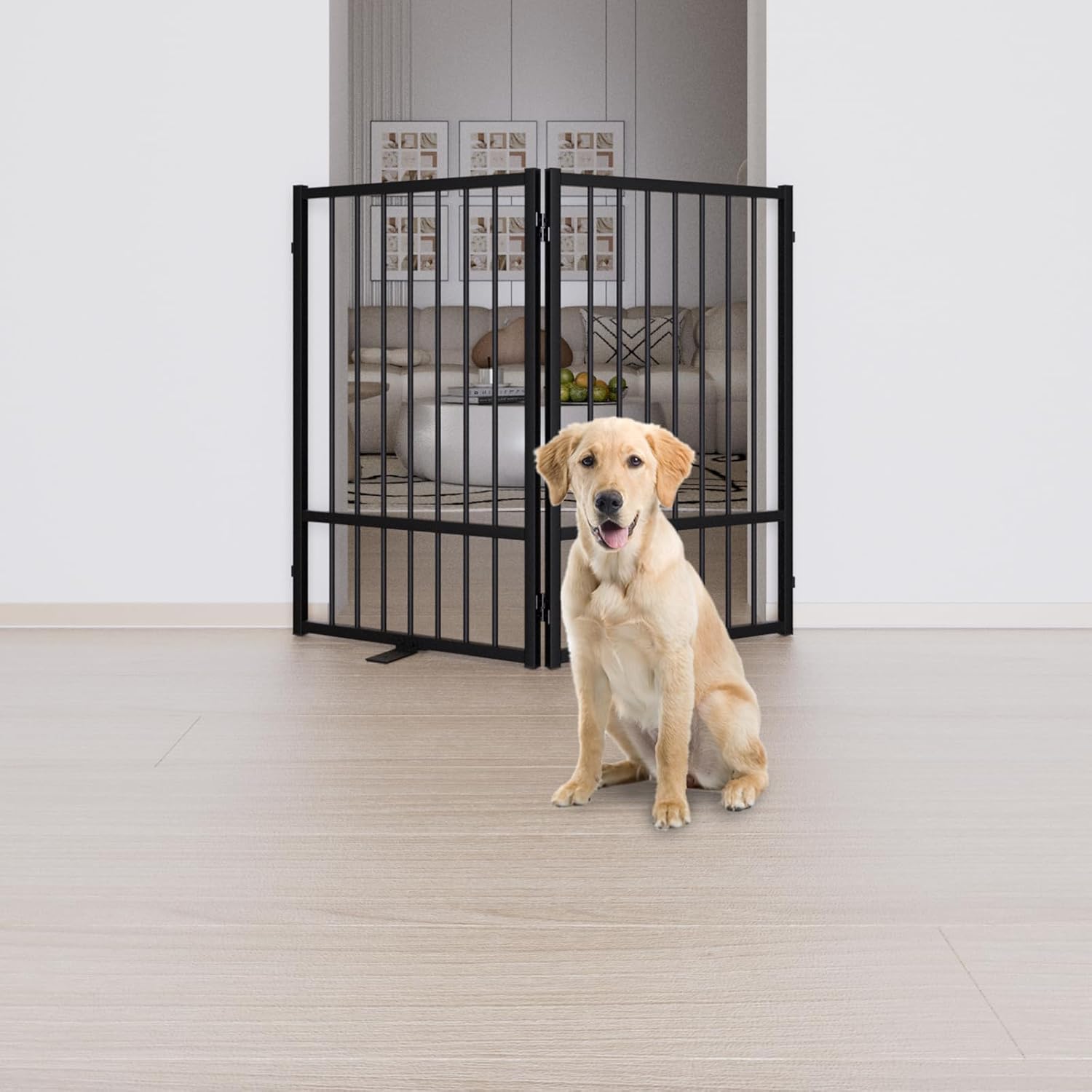 - [Versatile Sizes]: Our pet dog gate is available in 24-inch and 32-inch heights, perfect for puppies, small and medium dogs pets. Multi-choice of 2 panles, 4 panles and 6 panles, suitable for stairs, kitchens, bedroom doors, corridors and other indoor and outdoor forbidden areas.