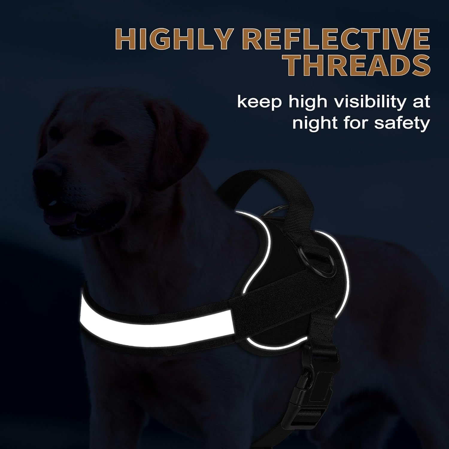 Haapaw Essential Dog Harness, No Pull Pet Vest with 3 Leash Clips, No Choke, Reflective, Adjustable and Padded, for Easy Walking and Training for Large Dogs(L, Black)