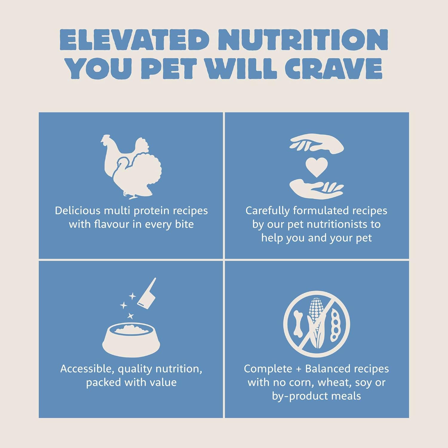 - Balanced Nutrition: Complete and balanced recipes with no corn, wheat, soy, white potato, or by-product meals