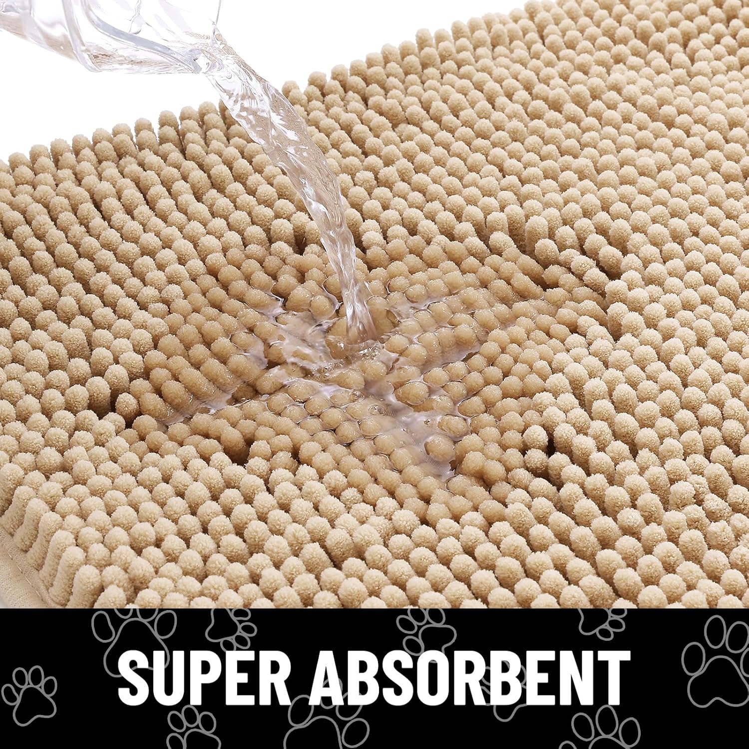Smiry Dog Door Mat for Muddy Paws, Absorbent Dirt Trapper Non Slip Quick Dry Washable Chenille Mat for Mud Dogs, Entry Rug for Indoor and Outdoor (71x46 Inches, Beige)