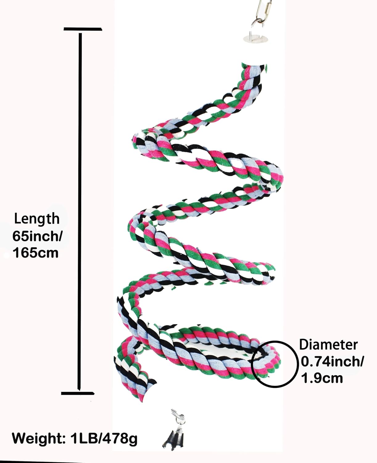 - 🐦[MATERIAL &SIZE] Natural food coloring and non-toxic cotton suitable soft footing and no smell,Heavey duty made ,Length 65 inch/165cm(Fully extended), Diameter:1.9cm/0.74inch ,Weight 1lb/478g