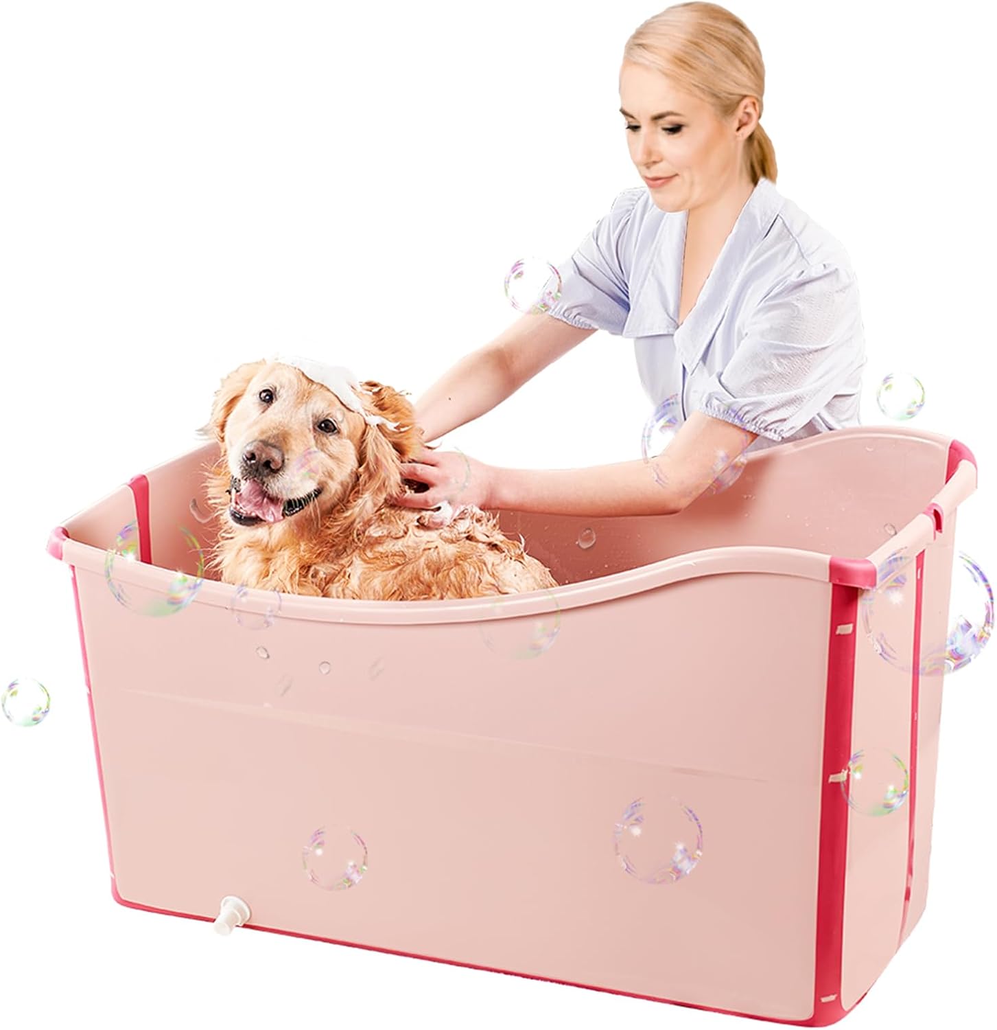 - 【Spacious Dog Bath Tub for Large Breeds】 Give your Labrador, Husky, or Samoyed the ultimate spa day! Our extra-large pet bathing tub (38.6"L x 21.6"H x 18.9"W) holds 48 gallons, providing ample space for medium to large dogs to soak, play, groom and relax comfortably. No more cramped baths - the generous 48-gallon capacity keeps anxious pets calm while preventing messy water splashes. Features non-slip textured base for stress-free grooming.