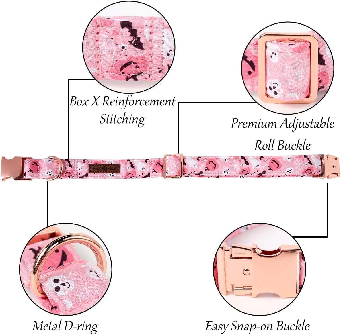 Lionet Paws Halloween Dog Collar with Flower, Cute Fall Pink Adjustable Cotton Pumpkin Ghost Pet Collar for Small Dogs