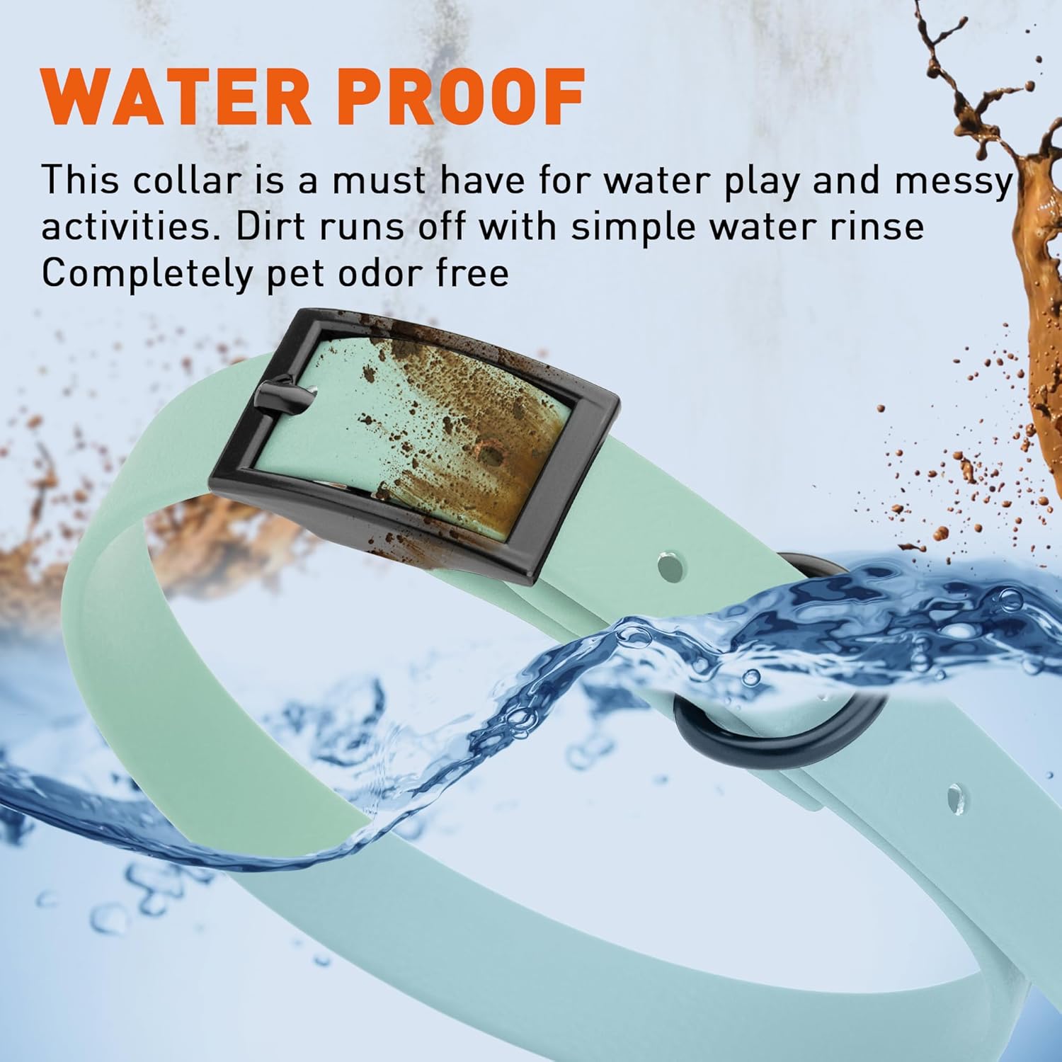 • Free Your Dog to romp in puddles and retrieve from lakes with the Dogline Biothane Waterproof Dog Collar. This water-repellent collar stays dry and odor-free, without shrinking or losing flexibility.