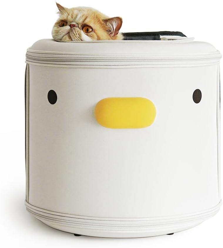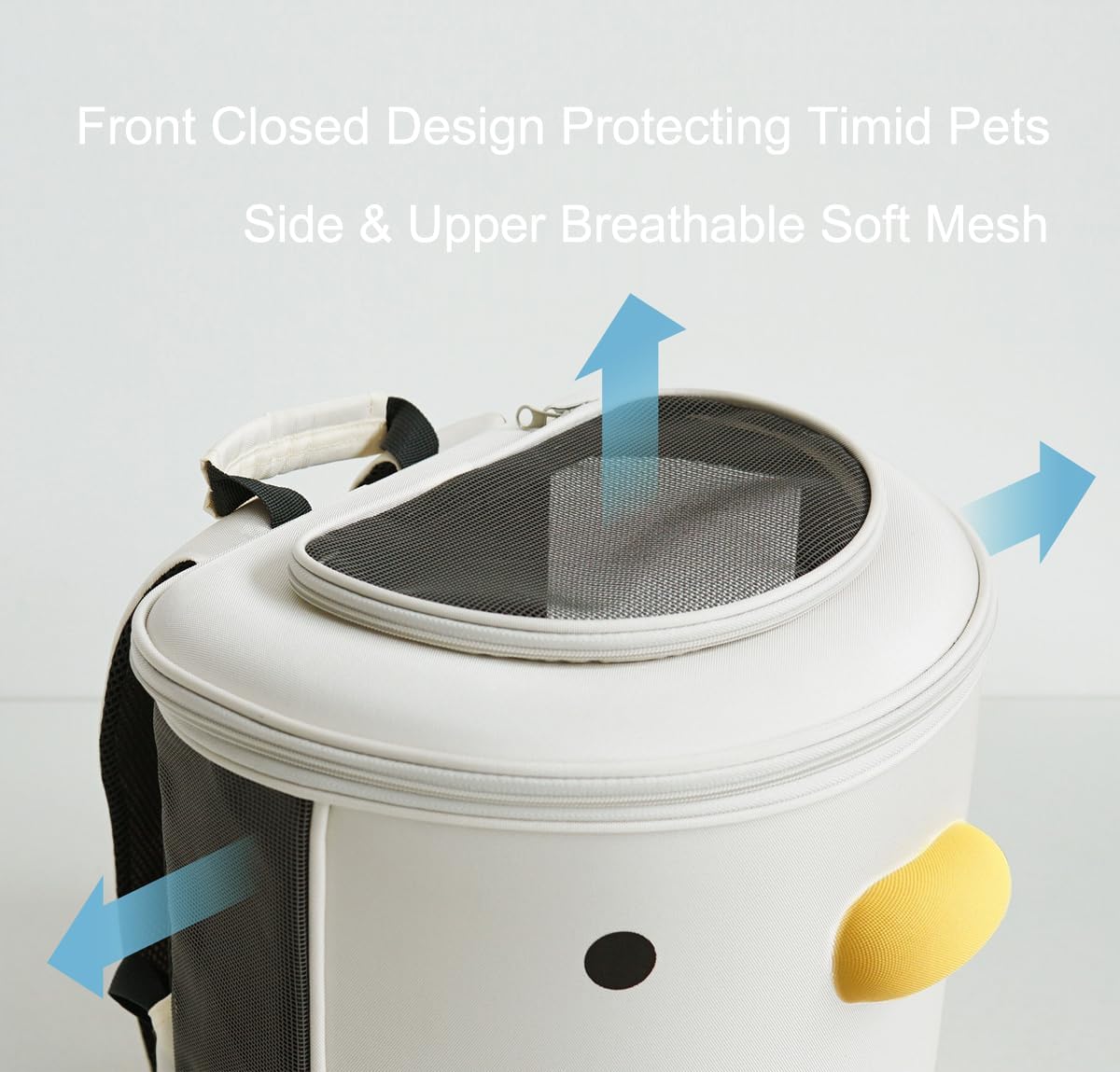 - FRONT ENCLOSED DESIGN: The front of the backpack features a cute duck shape and a closed design, effectively protecting timid pets & reducing pet anxiety. The side and top are equipped with large breathable nets, ensuring sufficient air for cats & small dogs.