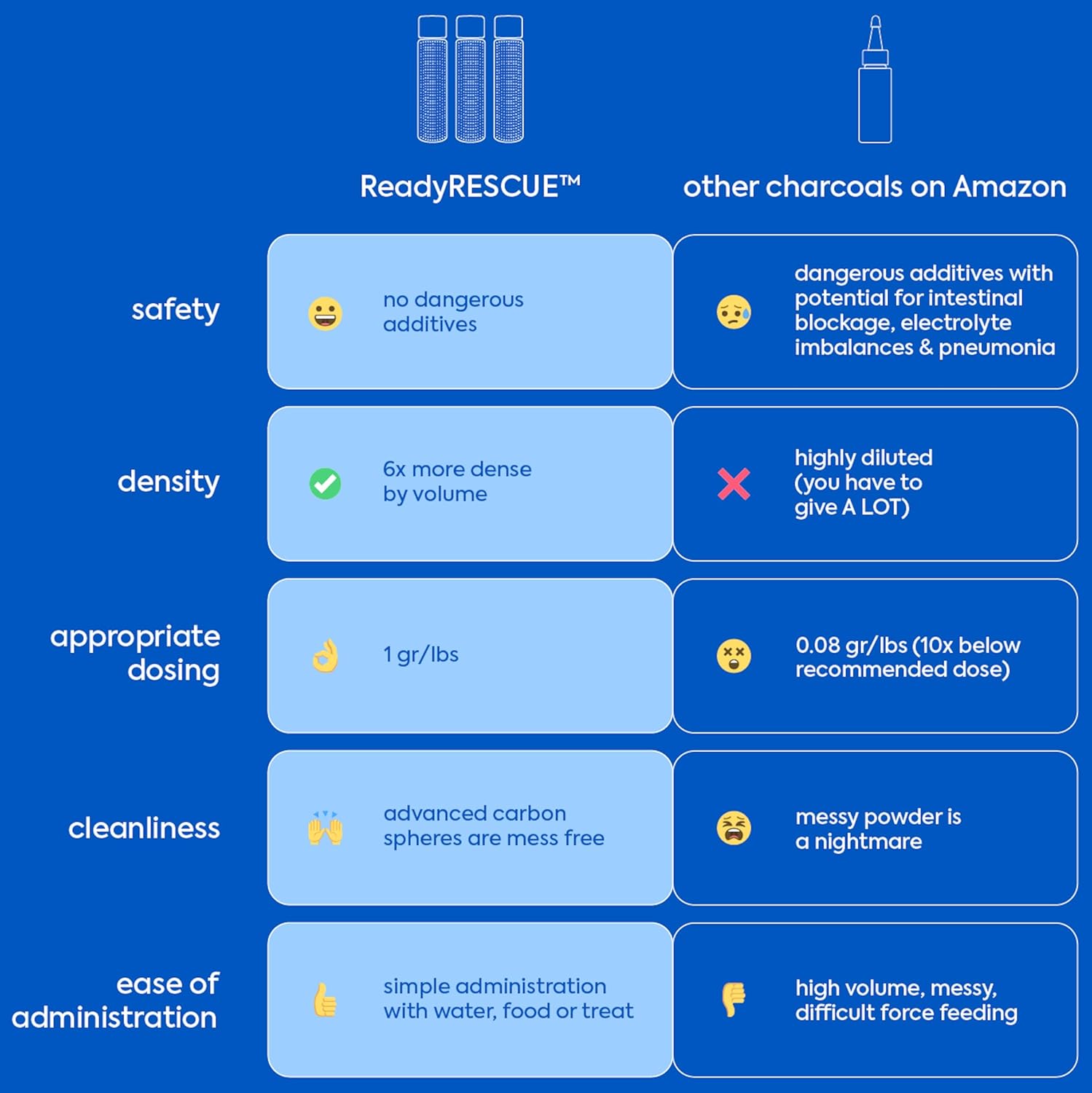 - SAFE AND RELIABLE: Worry less about accidental overdoses or false alarms. ReadyRESCUE is completely safe, even if poisoning isn't confirmed. It passes harmlessly through the GI tract absorbing potential poisons along the way, ensuring your pet's safety every time.