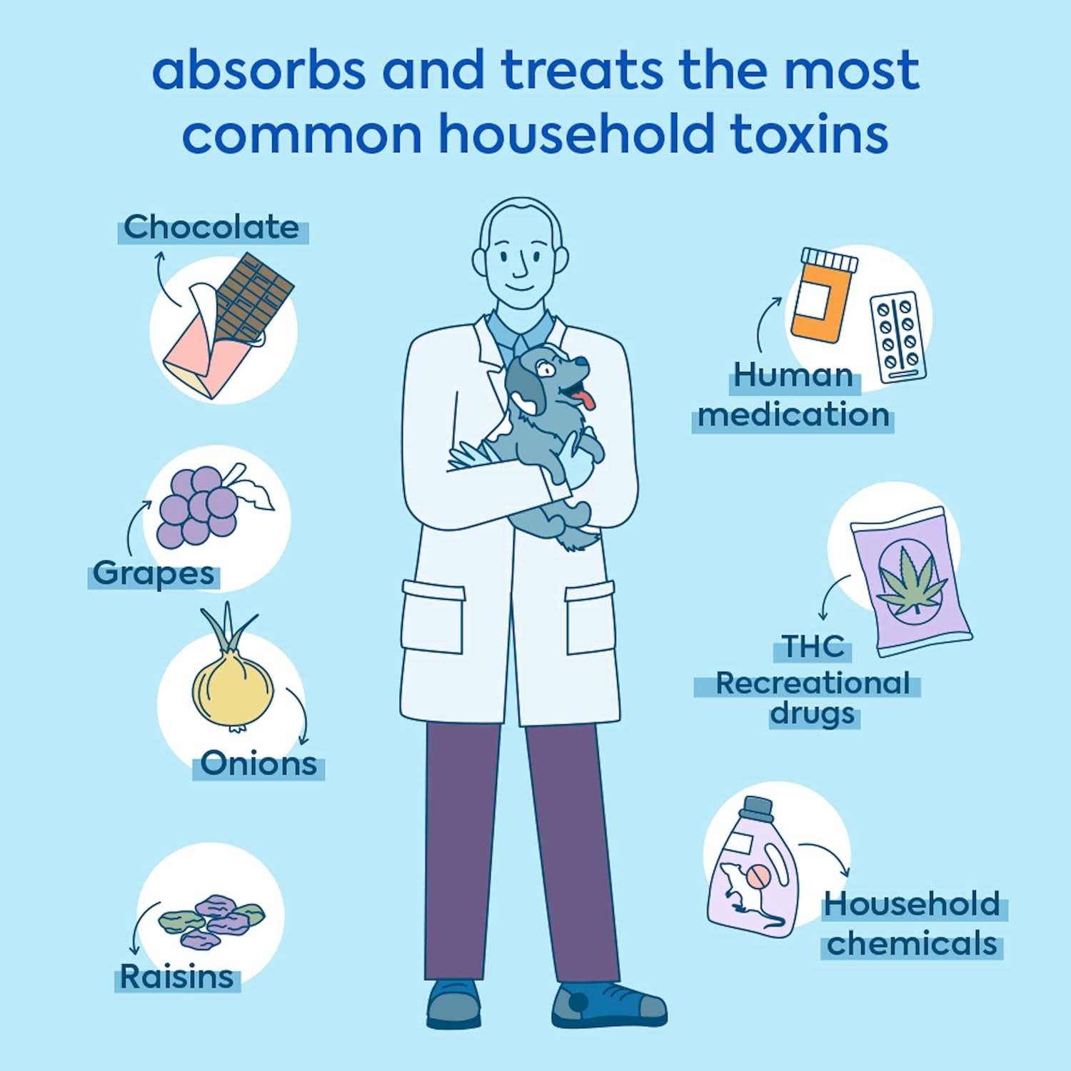 - HELPS RELIEVE DISCOMFORT: Instantly neutralizes a wide range of toxins like chocolate, grapes, THC, and houseplants. Say goodbye to your pet's discomfort and hello to a happy, healthy tummy. Perfect for use alongside other dog diarrhea medicines.